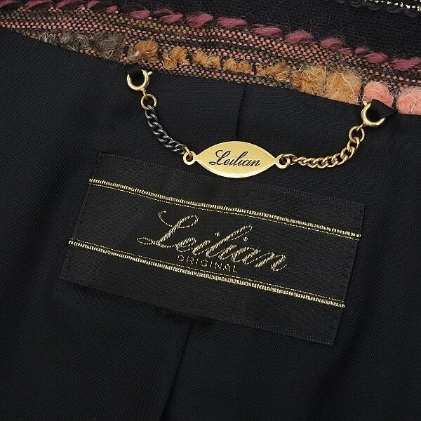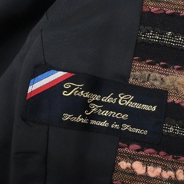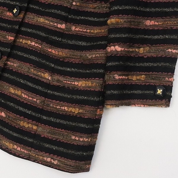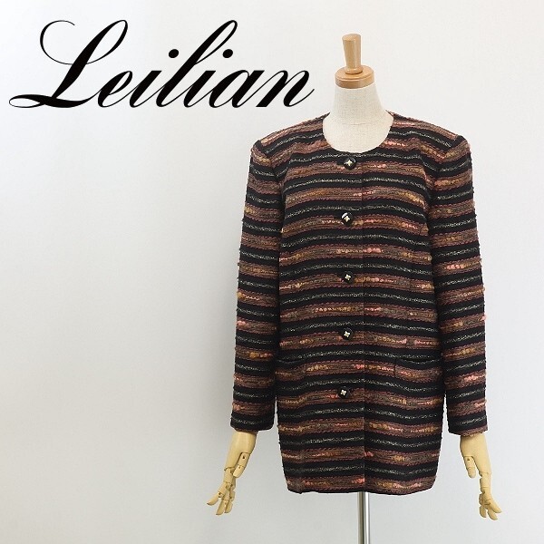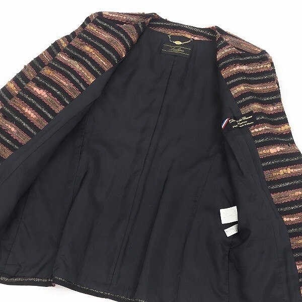 美品◆Leilian レリアン×Tissage des Chaumes France フランス製生地 ラメ混 ボーダー柄 デザインボタン ノーカラー ジャケット | |