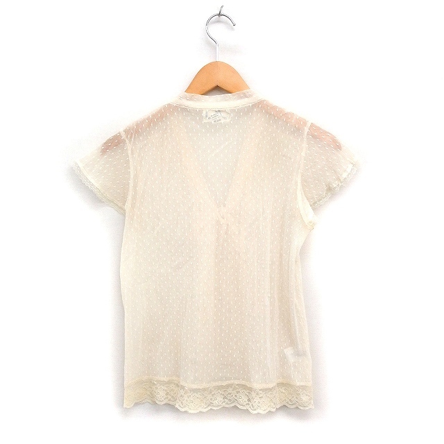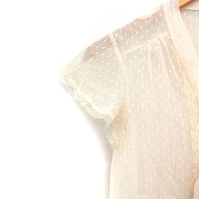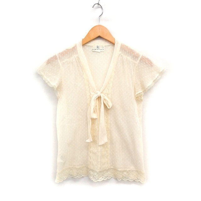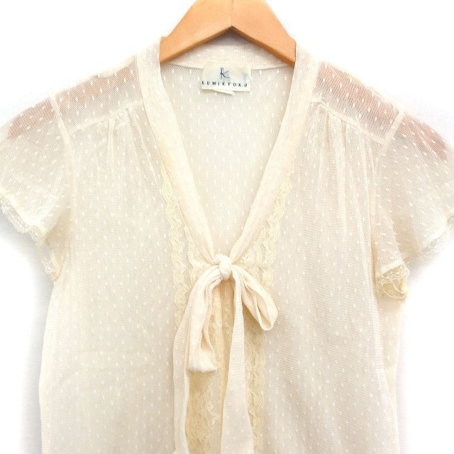 クミキョク 組曲 KUMIKYOKU ドットチュール ブラウス 半袖 切替レース リボンネック 2 ライトベージュ /FT20 レディース