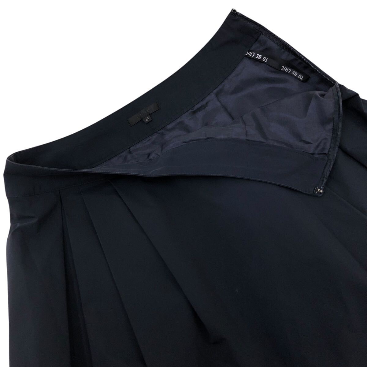 Nm308-3 TO BE CHIC トゥービーシック タフタ タック フレアスカート スカート ボトムス ネイビー 紺 レディース 40 日本製