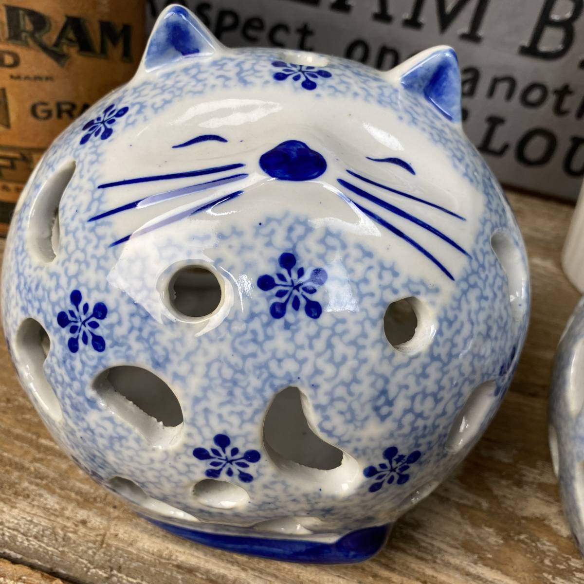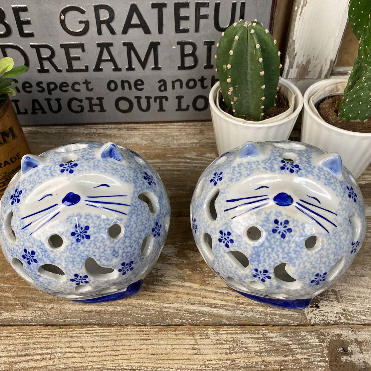 ◆◇商品詳細◇◆ ☆陶器猫置物セット☆ バリアートのオススメ染付け陶器です。藍色のどこか懐かしい色合いが人気の品です。 置物、ロウソク入れ、LED照明入れなどインテリアに使えるまんまるネコをセットにしました。他に、ショップのディスプレイなどたくさんの用途があります。お値段もお手ごろ価格を設定しておりますので、ちょっとしたプレゼントにもオススメです。 重みもあり、高級感もある品で、他を探してもなかなか見つけられない陶器雑貨です!和風、アジアンなお部屋のワンポイントにしたい一品ですね♪在庫処分セールにつき激安販売!送料無料の今がお買い得です! 【商品状態説明】 美品。海外職人手作り品のため多少の染ムラ等ある場合があります。 【サイズ】 一点分約:16cm×16cm×16cm 入口サイズ14㎝×8㎝ 【素材】 陶器 【カラー】 藍色 【完品参考価格】 ¥5000 | ◆◇発送方法◇◆ ●送料は基本無料ですが、沖縄・離島などにお住まいの方はご負担ください。 (沖縄・離島の方はメールにてご連絡いただければ、送料をお知らせいたします。) ●ヤマト運輸・佐川急便・第一貨物のいずれかにて配送いたします。 (運送会社の指定はできません。ご了承ください。) ●日時・時間指定のある方や、お問い合わせ(追跡)番号をご希望の方は取引連絡の際にお知らせください。 | |