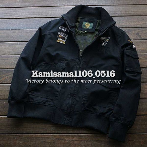 G958/XXXL(XL程度)新品★KALD BLACK メンズ 刺繍ワッペン ミリタリーMA-1 AIRFORCE 薄手ジャケット フライトブルゾン ジャンパー