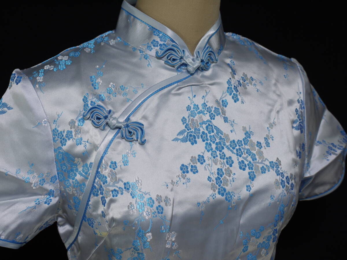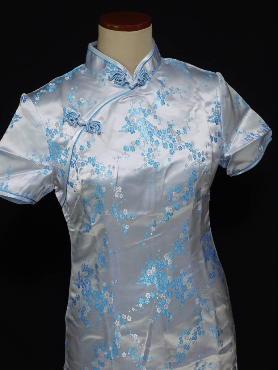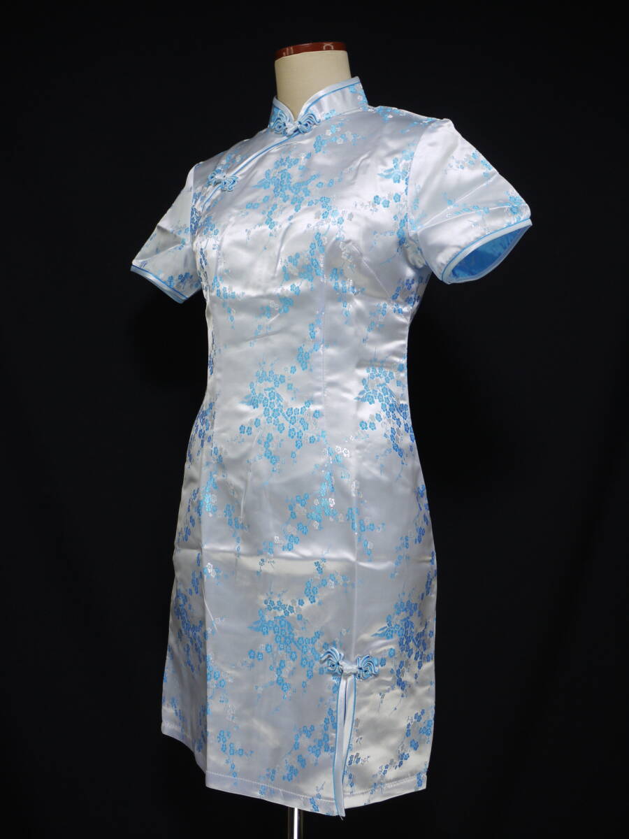 ★サイズS★ショート丈チャイナドレス らんま1/2 早乙女らんま シャンプー 李紅蘭 リンミンメイ(マクロス) Q01-水色梅-S