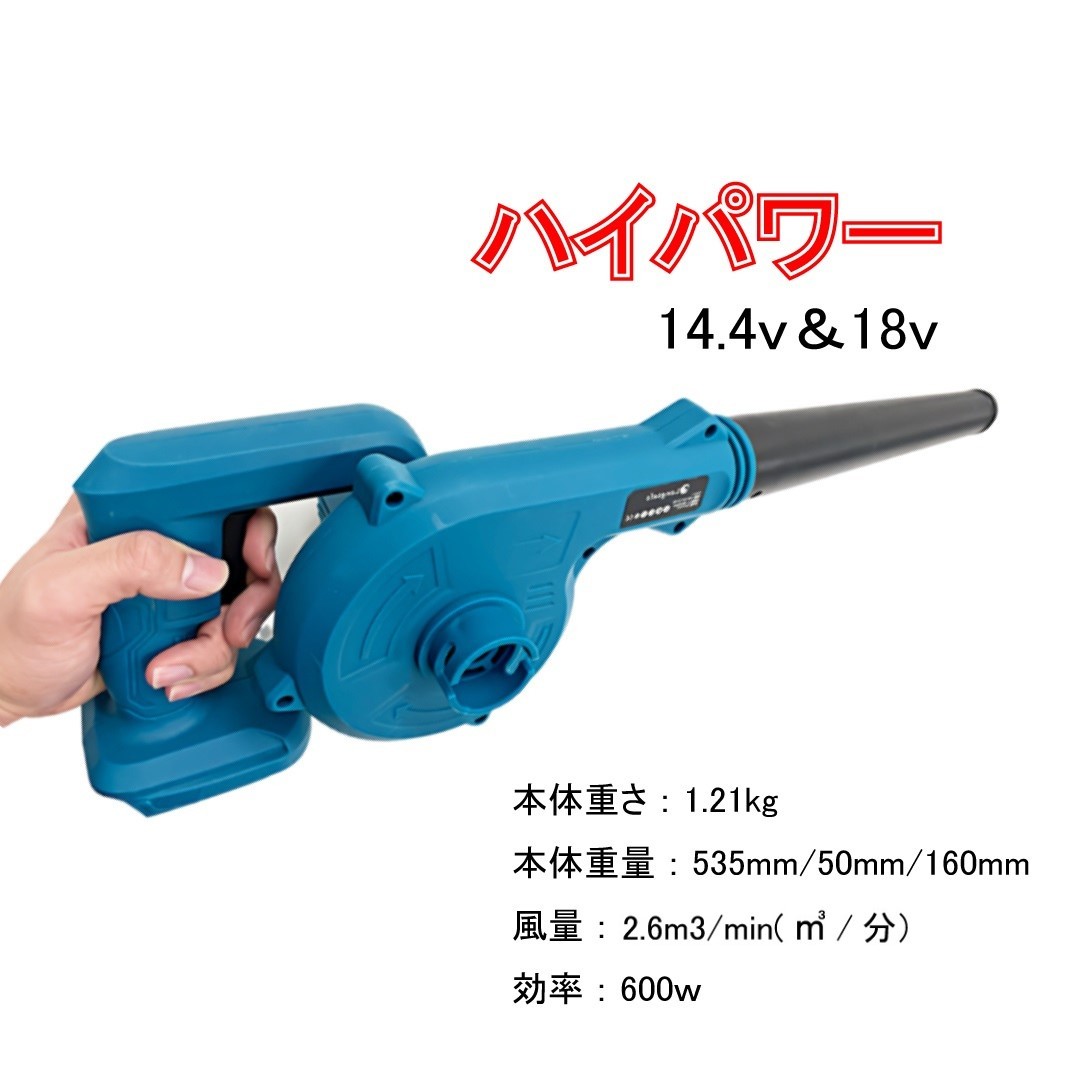 型番:コードレスブロワー マキタ 18V 14.4V バッテリー専用 風量:2.6m3/min(m?/分) 効率:600W 本体重さ:1.21 kg サイズ:53*50*16 cm ブロア ブロアー ブロワー