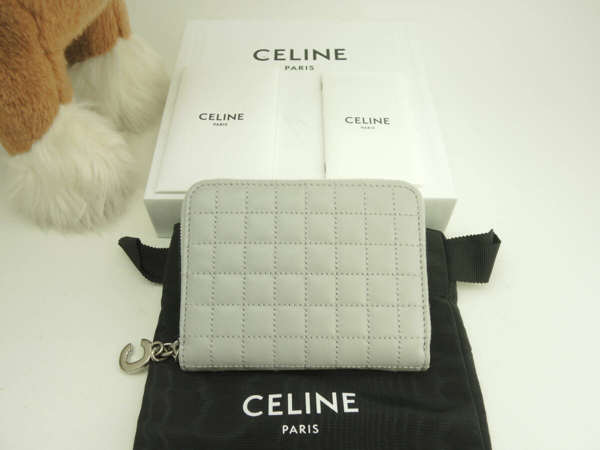 セリーヌ カード・コインケース キルテッド レザー薄灰 ミニウォレット 小銭入 未使用@ 10