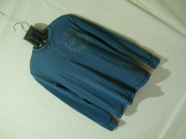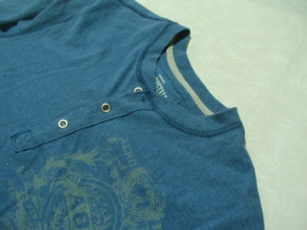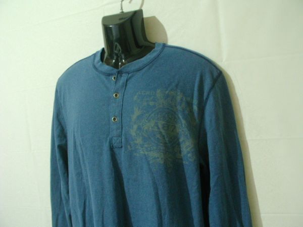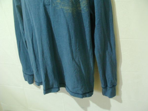 ssy7885 AEROPOSTALE 長袖 Tシャツ カットソー ライトブルー ■ 胸にプリント ■ ハーフボタン 綿混素材 Mサイズ
