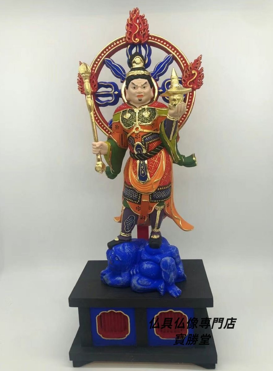木彫仏像 仏教美術 精密細工 仏師で仕上げ品 総檜材 彩色 彩繪 切金 毘沙門天像 高さ32cm【送料無料】【仏具仏像専門店寶勝堂】