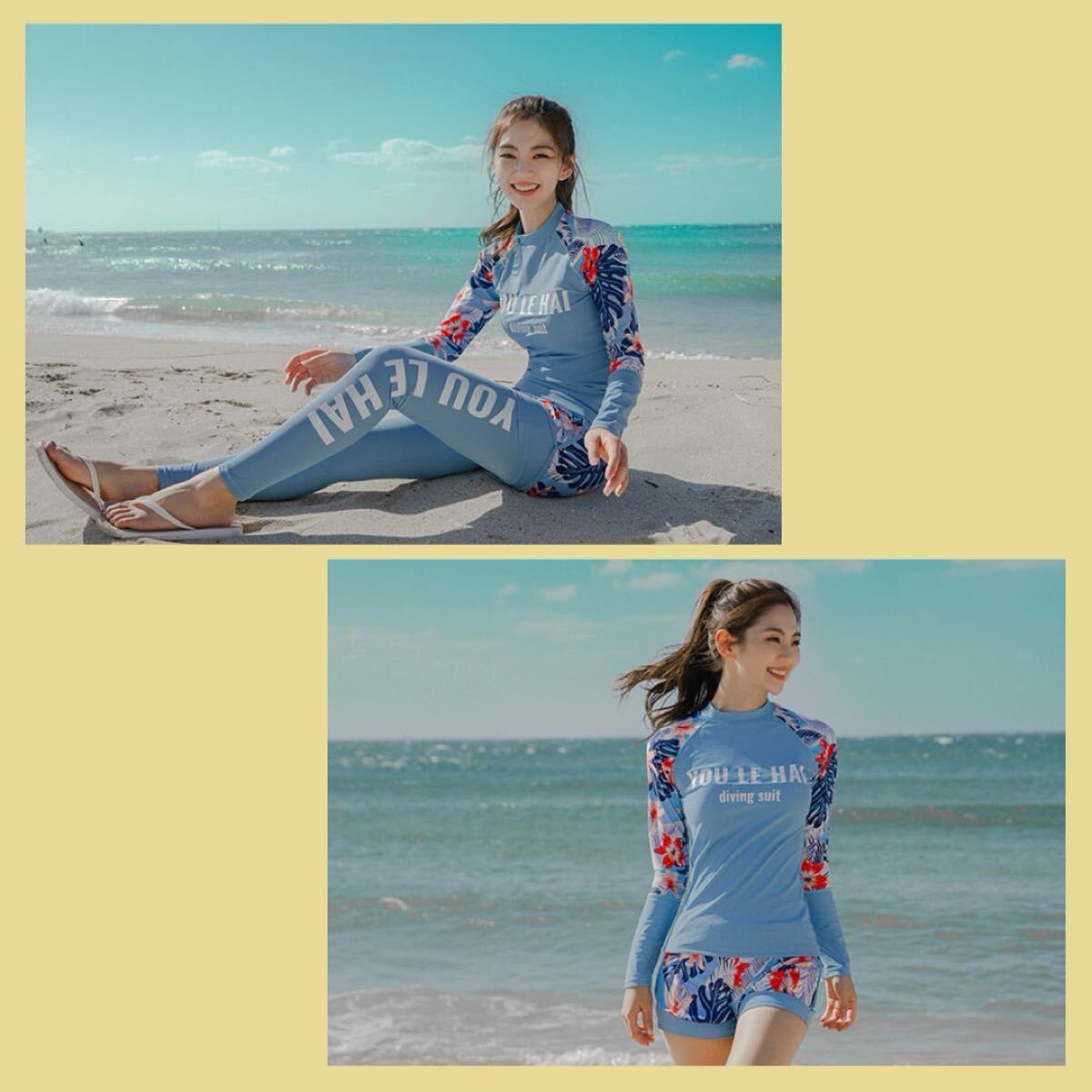 ラッシュガード スポーツウェア 水着 スイムウェア セット 長袖 長ズボン ショートパンツ ロングパンツ ダイビングスーツ ブルー 青 水色
