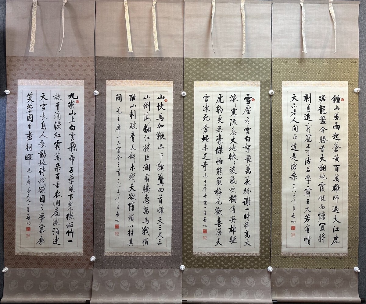 中国書画「啓功 書法四條屏」肉筆紙本 掛け軸 墨寶 書道立軸 巻き物 古美術 旧蔵出