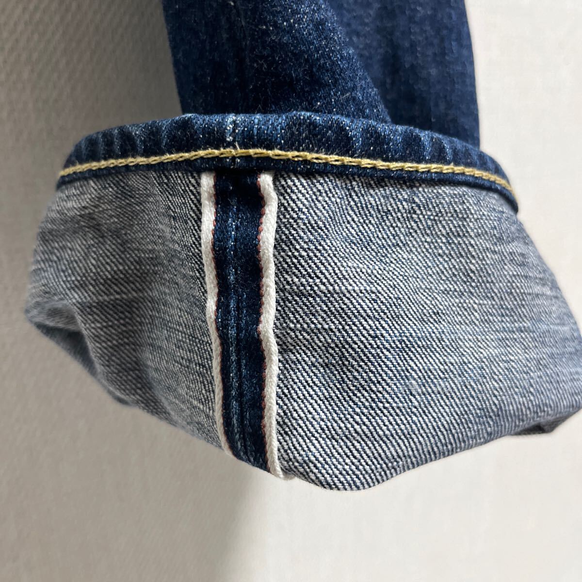 バックのペンキステッチ、リベットなしのコインポケット、HBTのポケットスレ―キ、月桂樹ボタン、股リベットから閂への移行等、当時物と同じように簡素化したディテールを忠実に再現!!