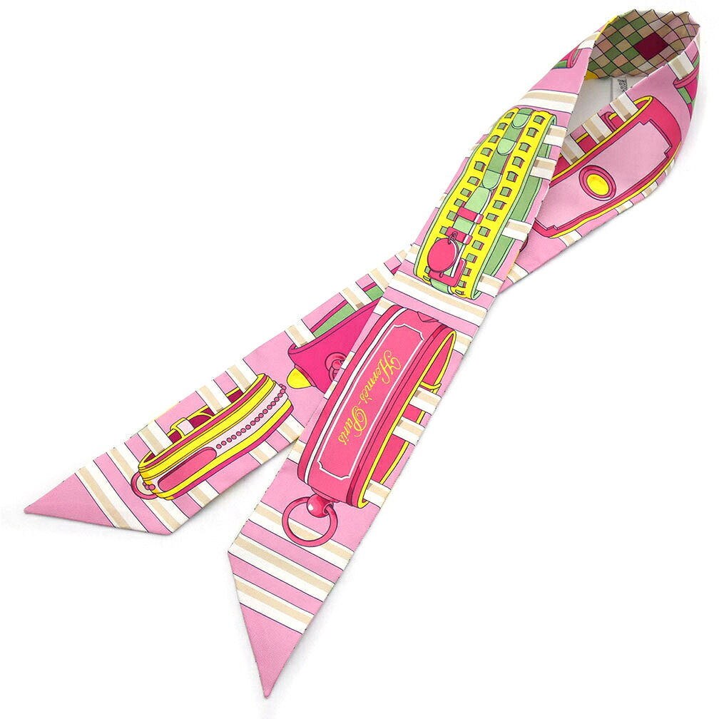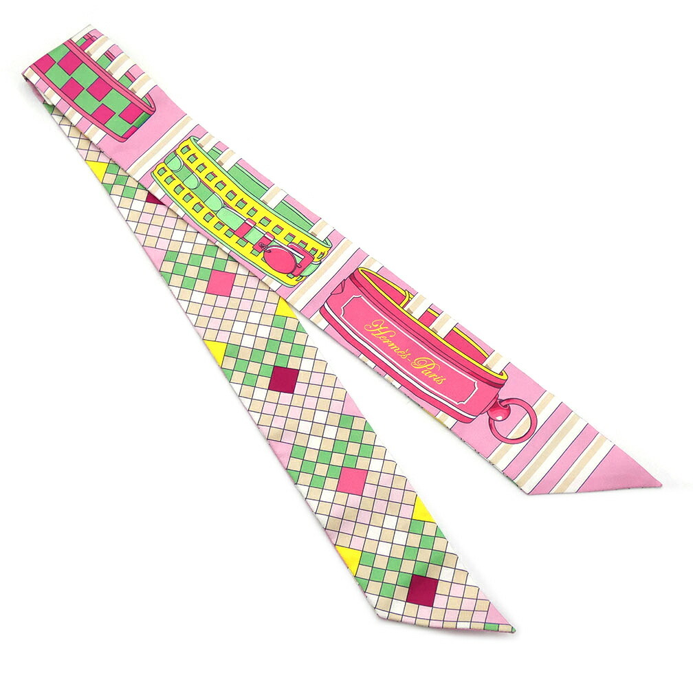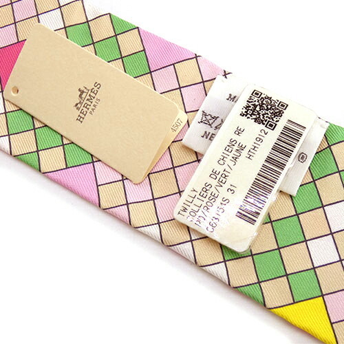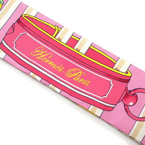 極美品 エルメス スカーフ HERMES シルク ツイリー COLLIERS DE CHIENS REMIX コリエドシアン リミックス ピンク 063154S