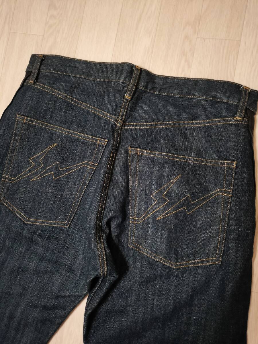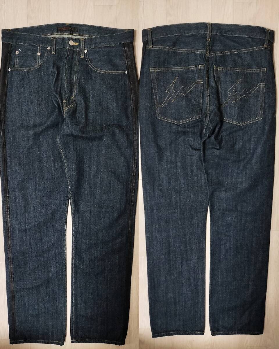 UNDERCOVER×fragment design/アンダーカバー×フラグメント/02AW/魔女期/archive/サイドレザーデニムパンツ/SIZE L/バックサンダー刺繍