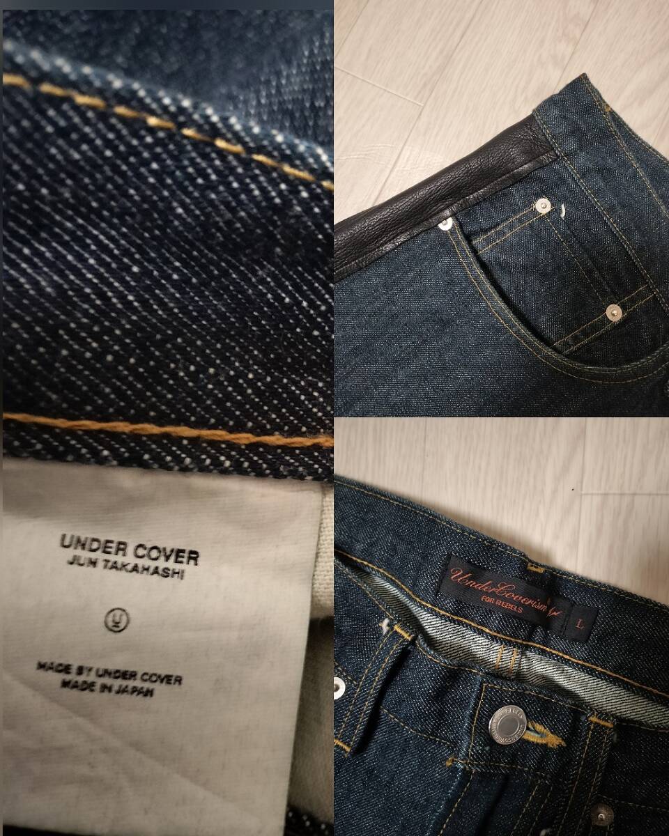 こちらUNDERCOVER×fragment designの02AW/魔女期/archive/サイドレザーデニムパンツです。