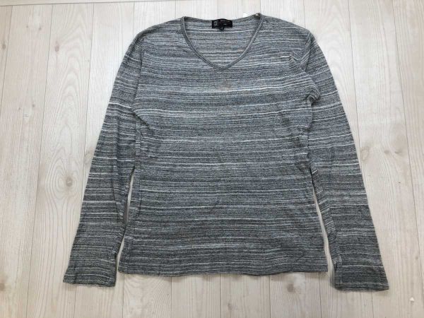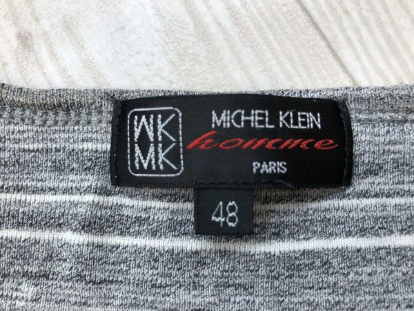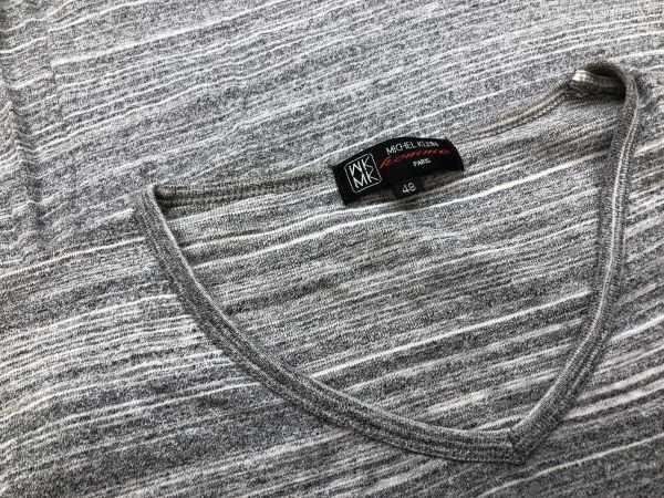 ミッシェルクラン MICHEL KLEIN HOMME ネオお兄系 ボーダー ハイゲージ Vネック 長袖 ニット ロンT カットソー メンズ 48 グレー白です。