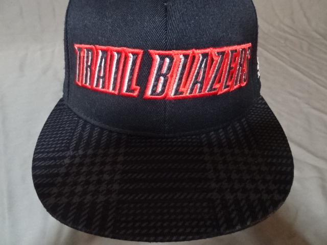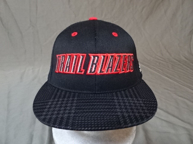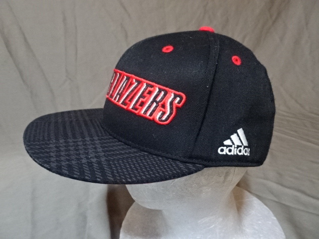 激レア USA購入【adidas】NBA バスケ トレイルブレイザーズ【Portland Trail Blazers】ロゴ刺繍入り ツバ部分 チェック柄キャップ 中古良品