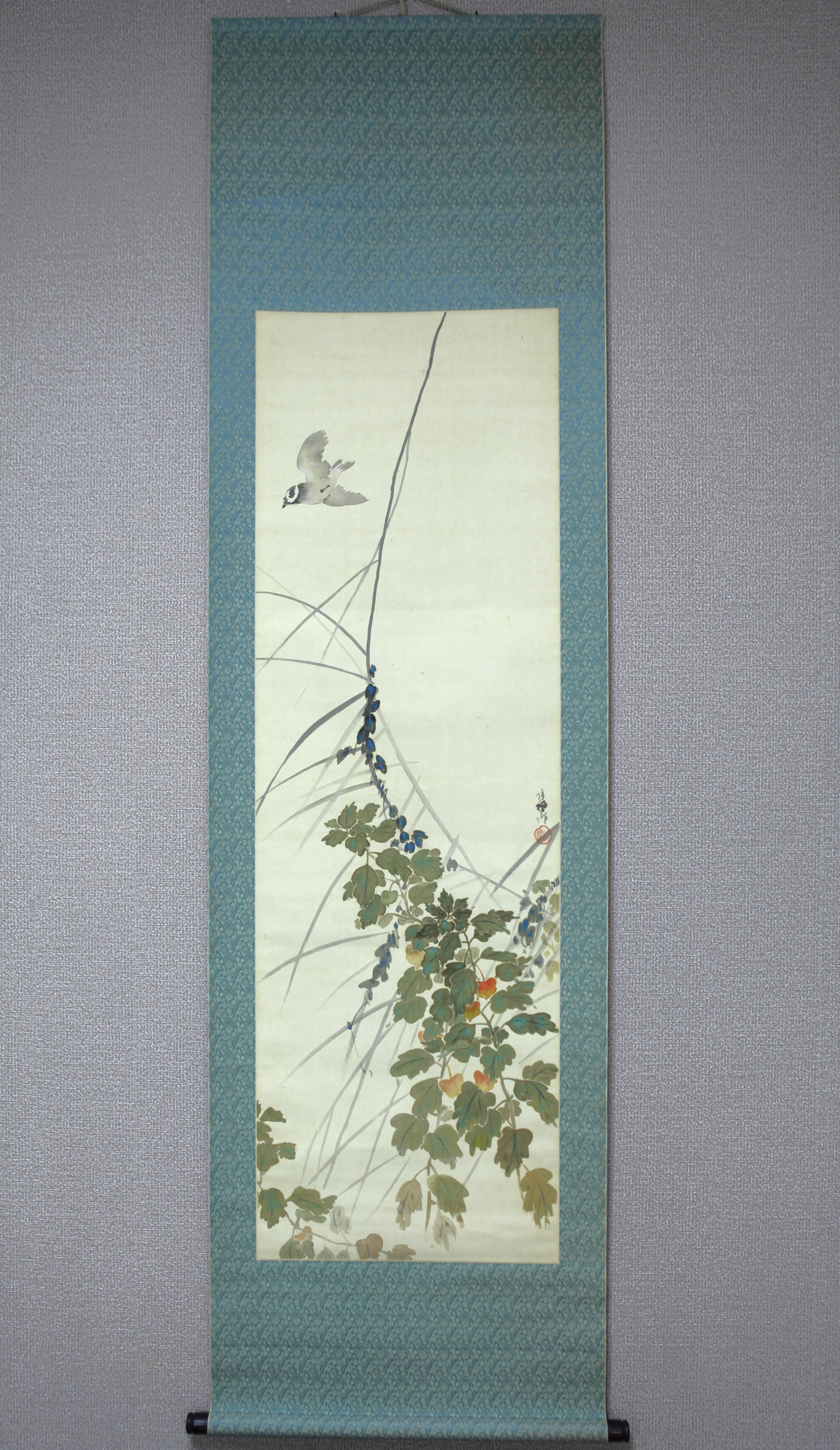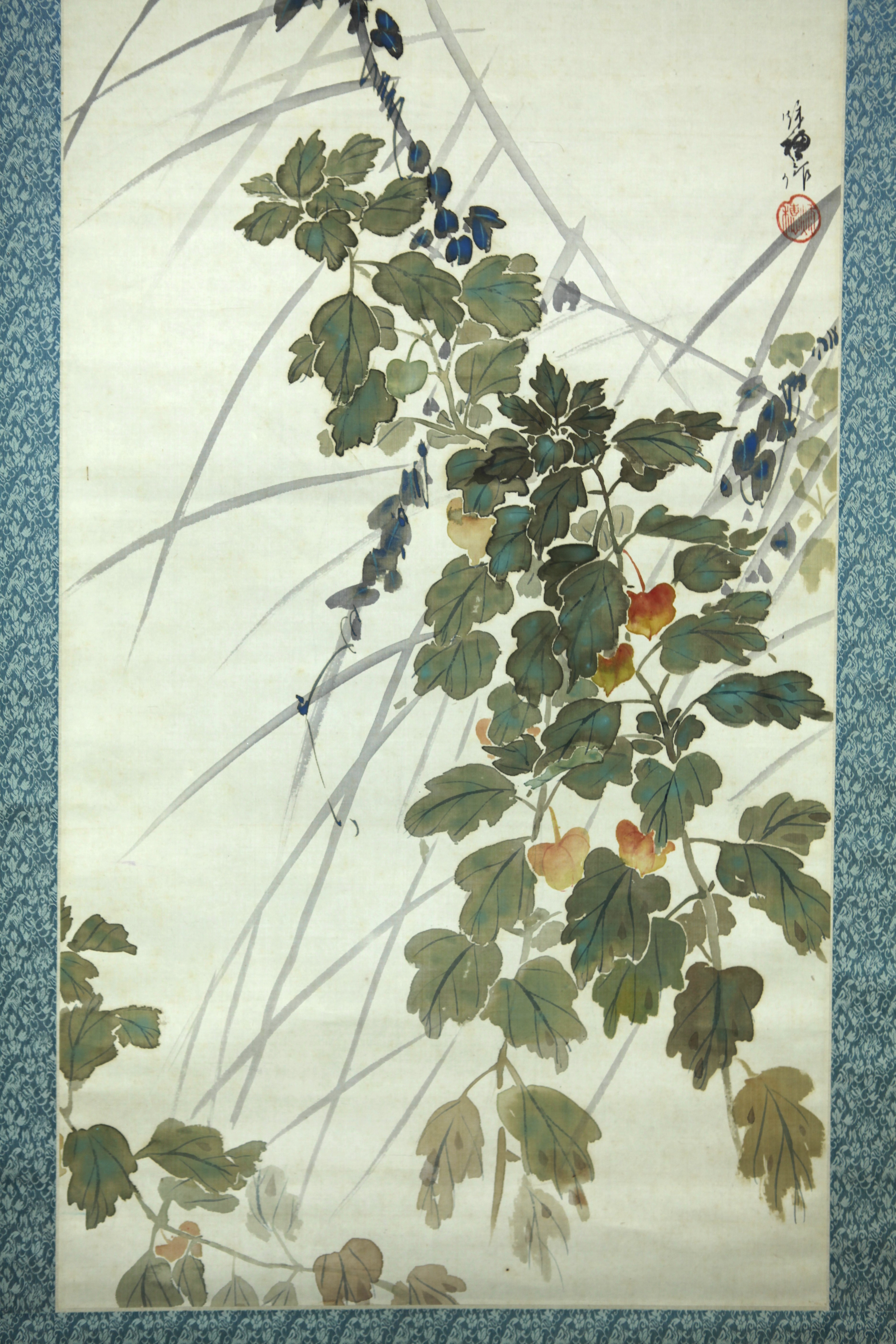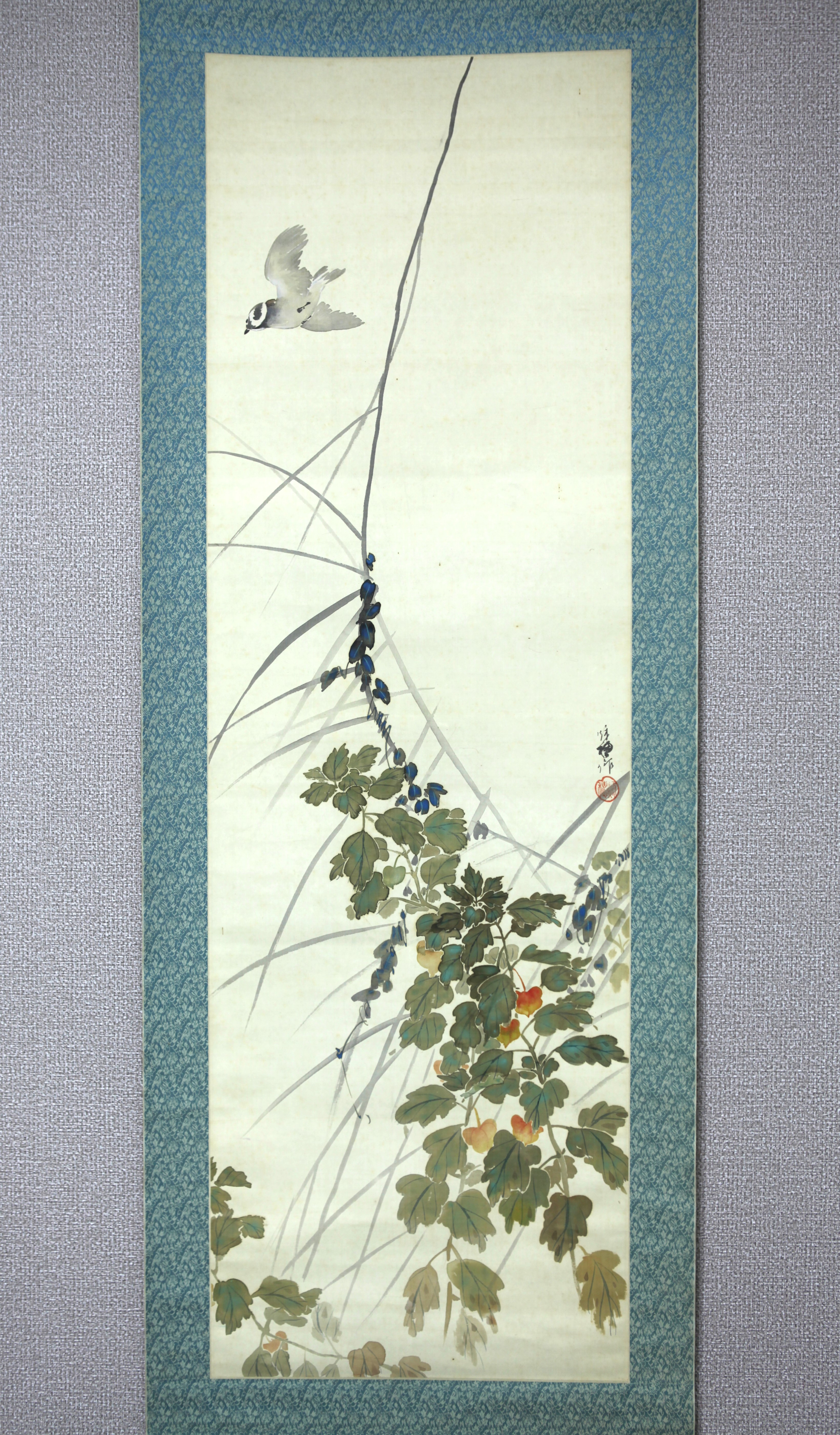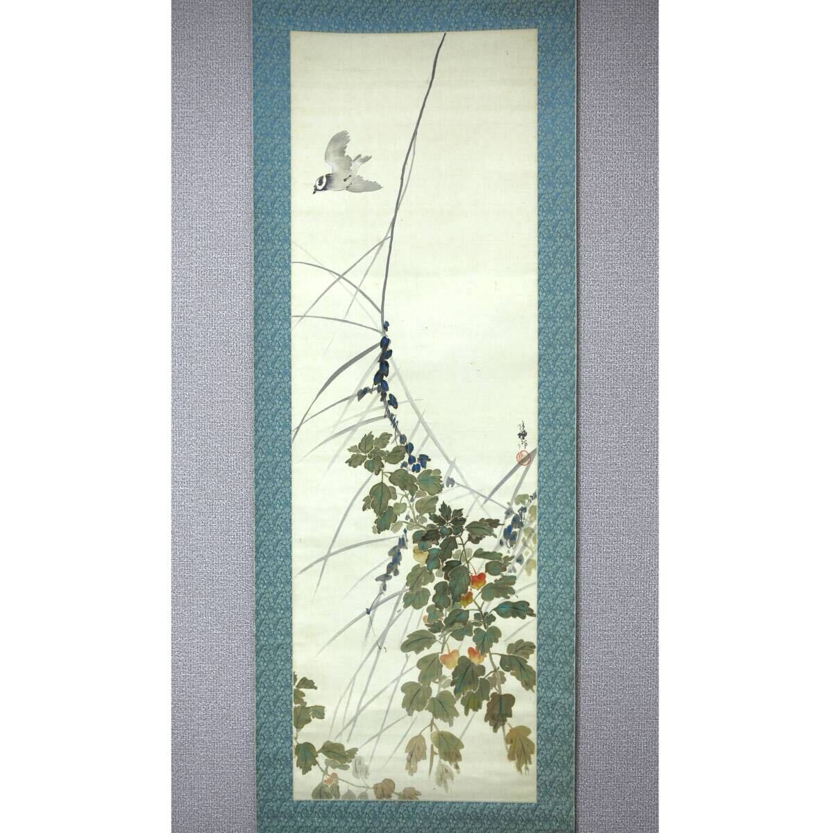 【真作】【風車】 平田秋穂 「早秋の図」◎肉筆絹本◎明治期 京都の人 日本絵画協会 | ||||||||||||||||||||