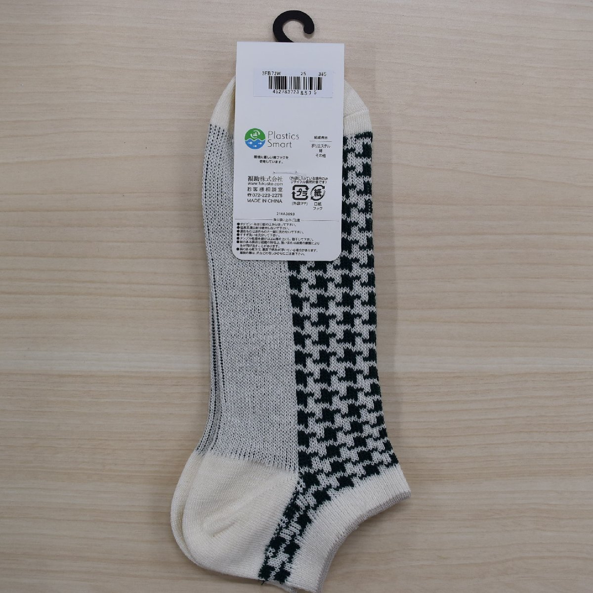 <新品> FUKUSUKE 靴下 25~27cm おしゃれ くるぶし丈 3FB72W ベージュ 千鳥柄 63