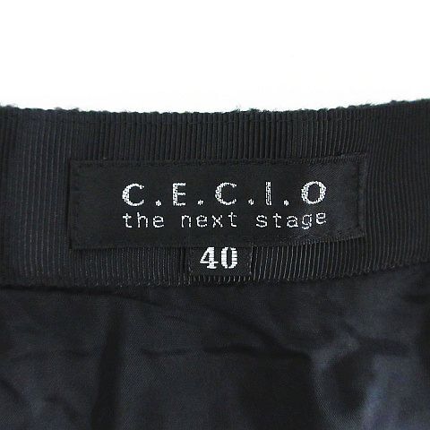セシオ CECIO スカート ボトムス ミモレ丈 フレア 厚手 ウール混 40 ブラック ※EKM レディース
