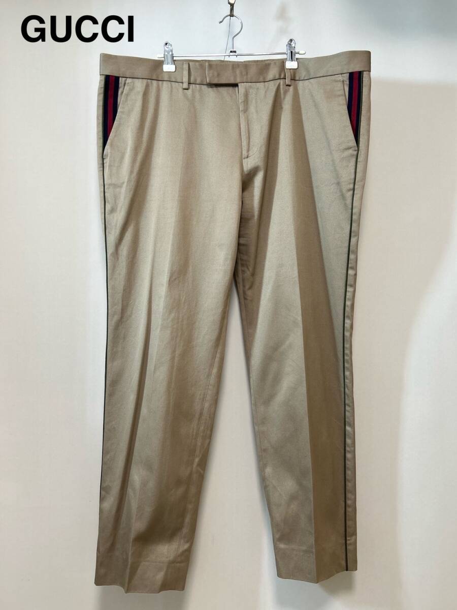 NN0036★10 高級 GUCCI グッチ 近年モデル サイド シェリーライン オーバーサイズ スラックス トラウザーズパンツ JPタグ 56size