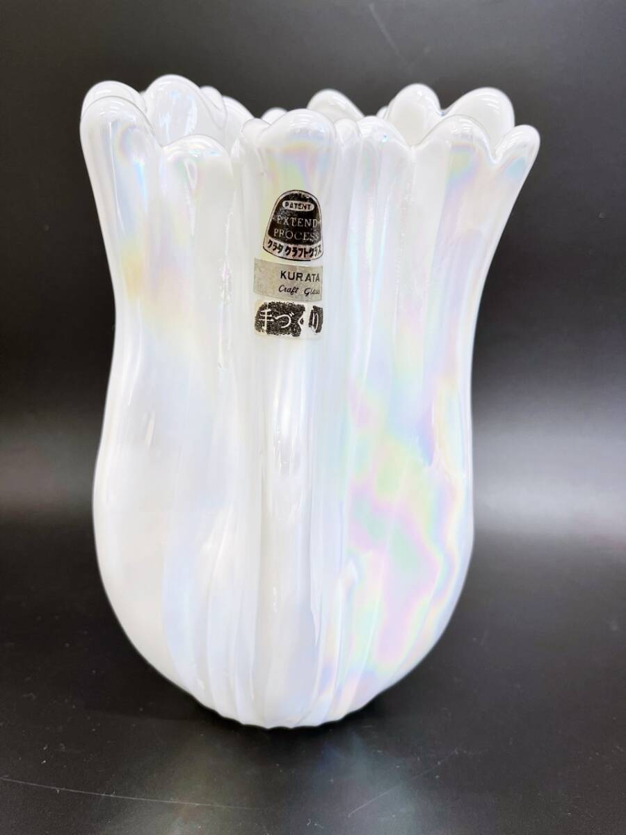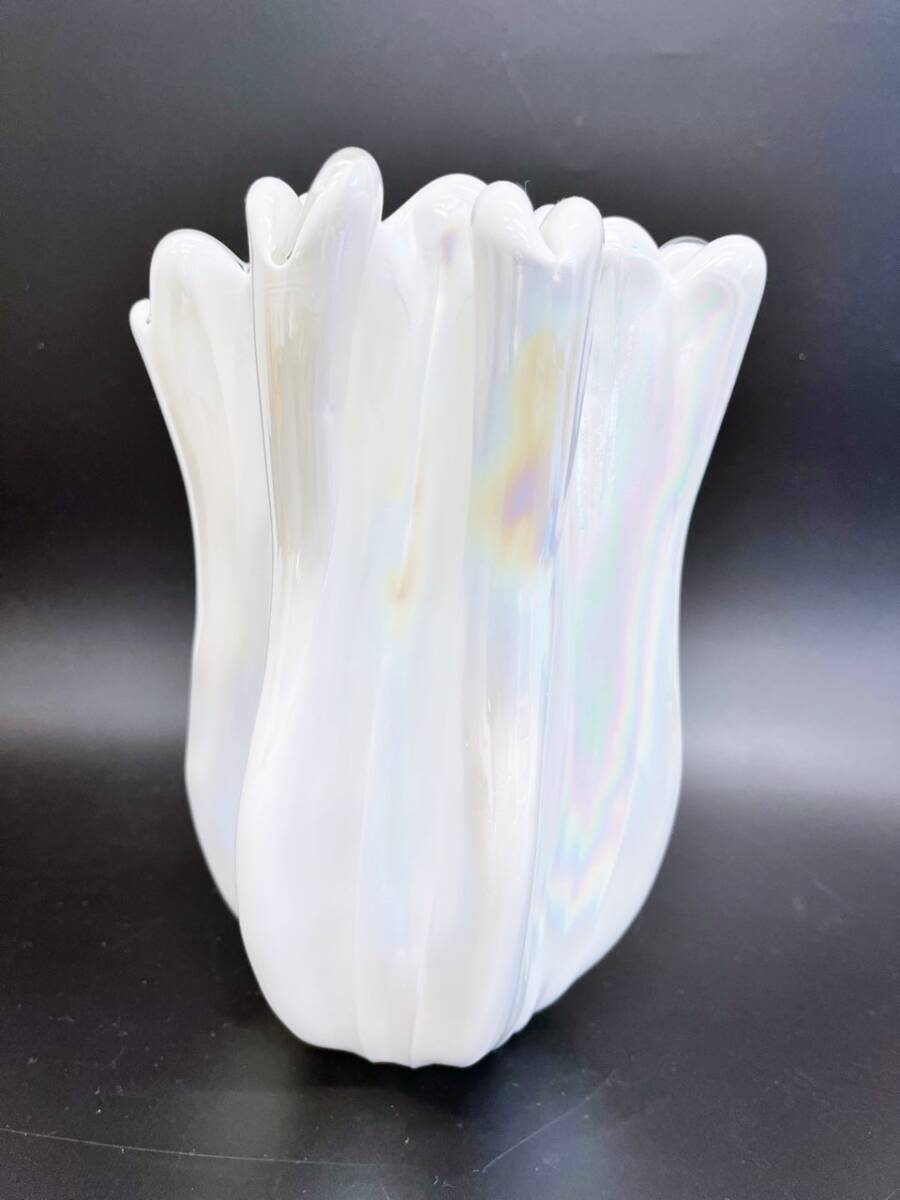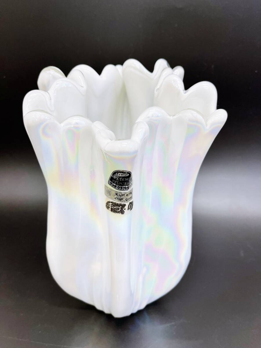 ⑥ ガラス花瓶 クラタ クラフトグラス ホワイト オーロラ加工 手づくり 花瓶 フラワーベース 花入れ 花差し 花生け 花器 花生け