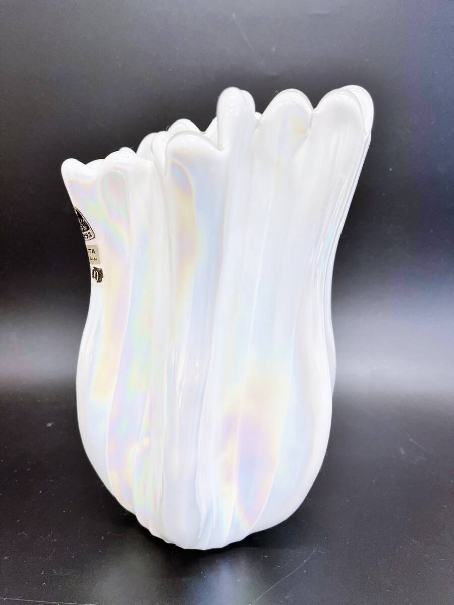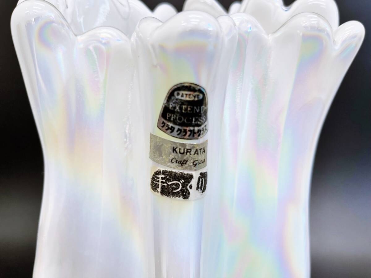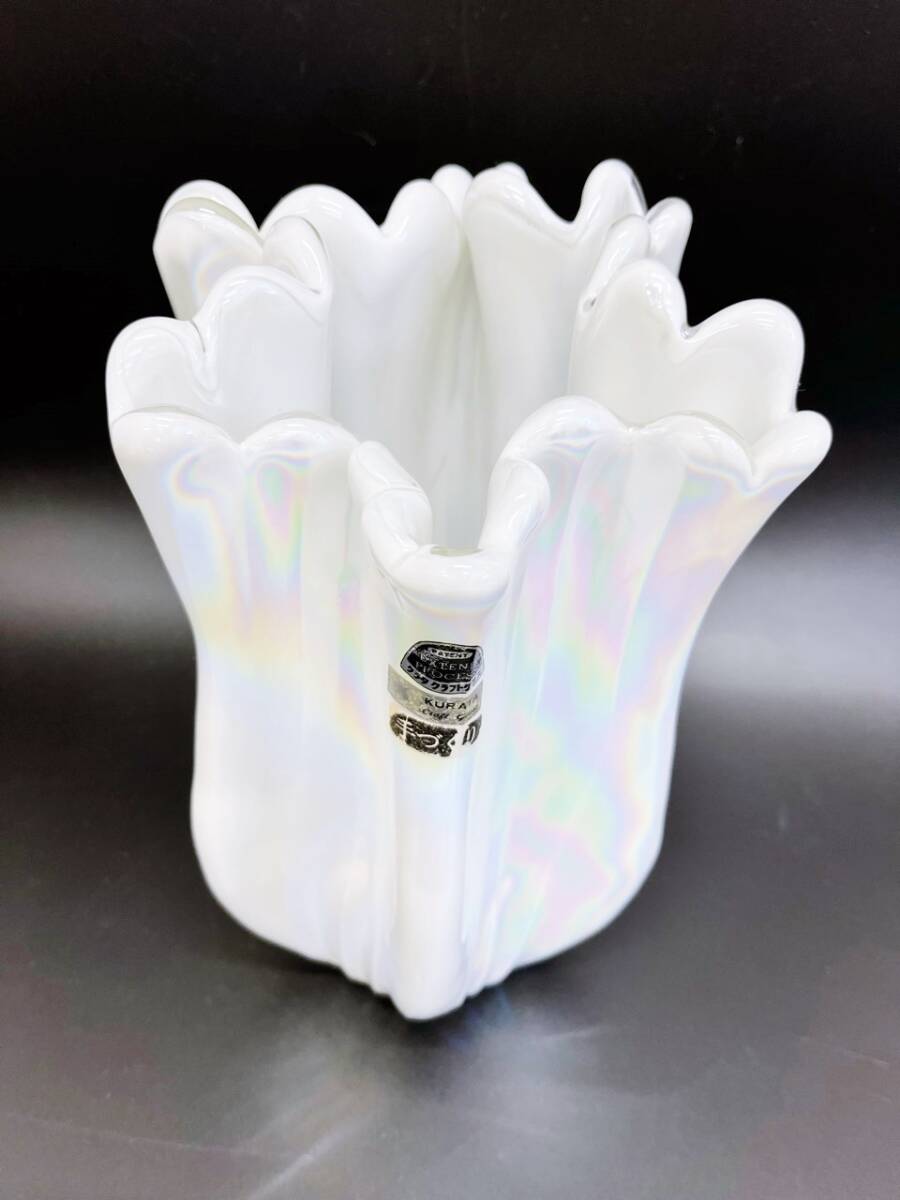 ⑥ ガラス花瓶 クラタ クラフトグラス ホワイト オーロラ加工 手づくり 花瓶 フラワーベース 花入れ 花差し 花生け 花器 花生け