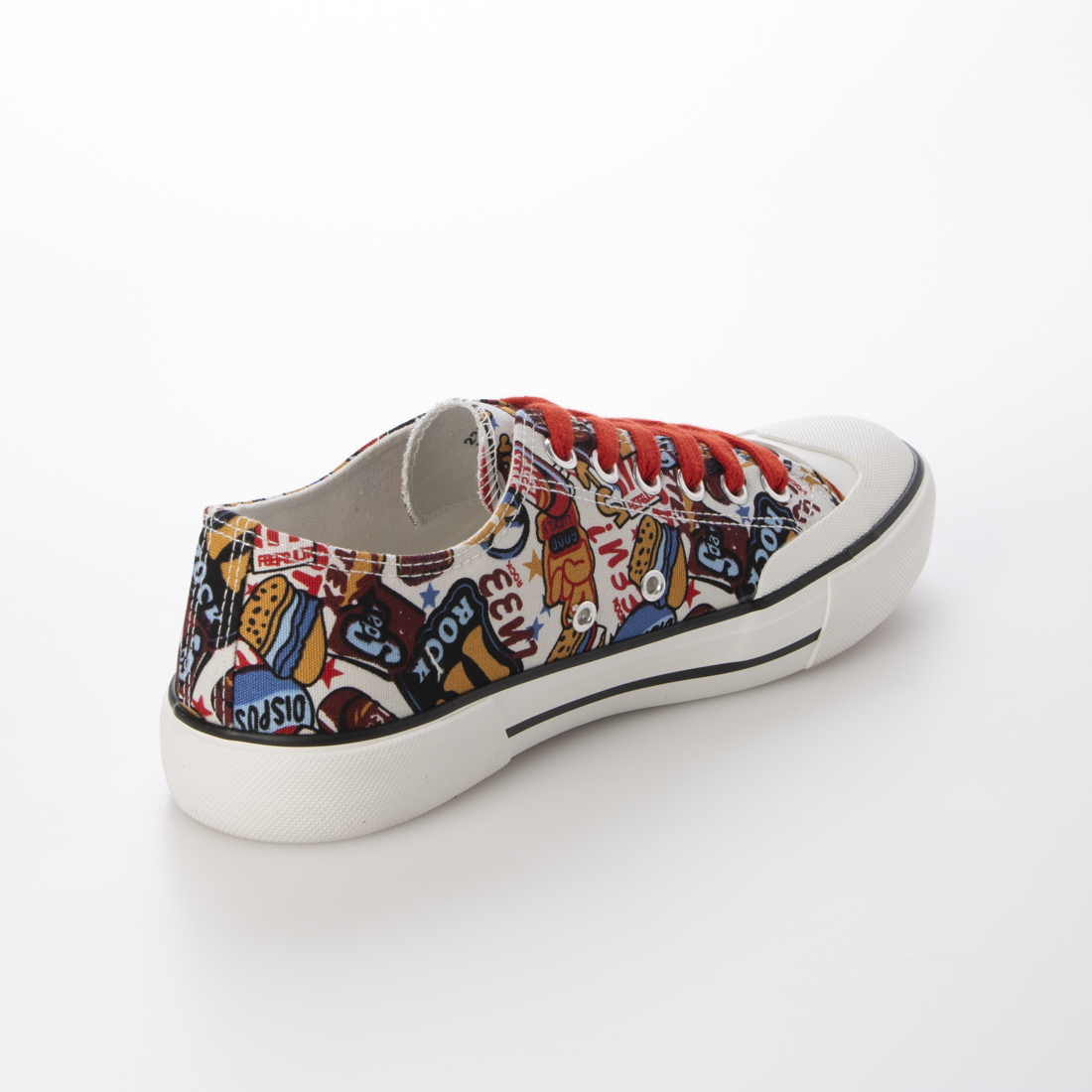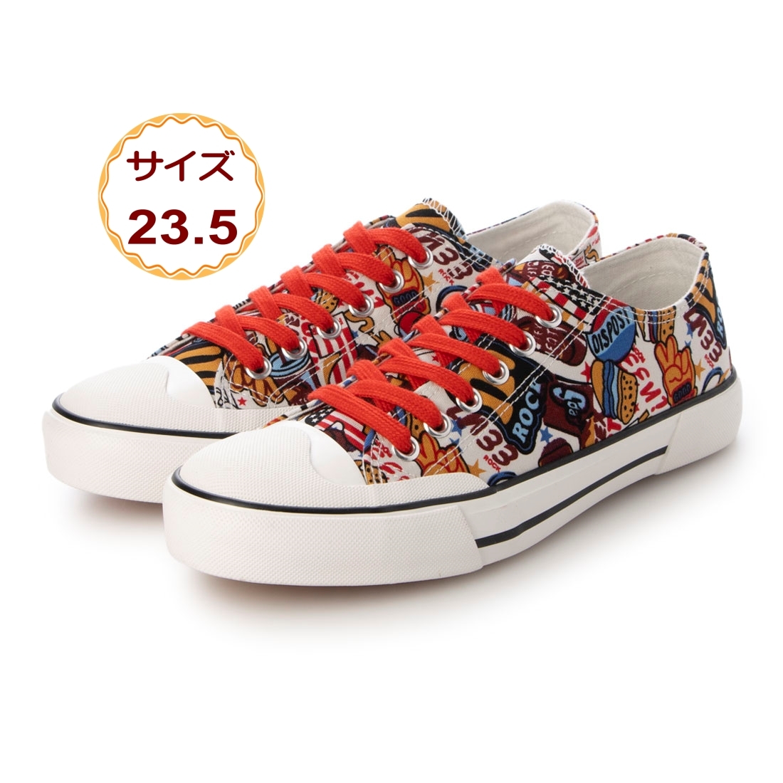 スニーカー ローカット キャンバスシューズ クッション カップインソール 通気性 防滑底 レディース マルチレッド 赤 23556-red-235 23.5cm
