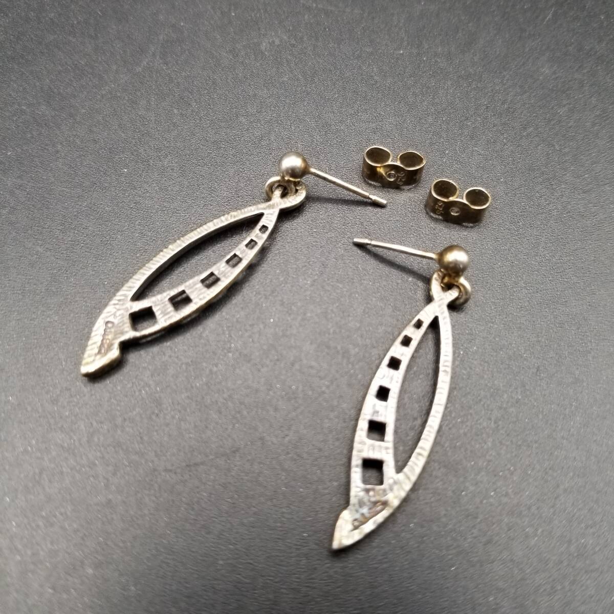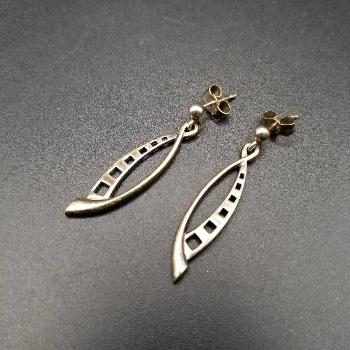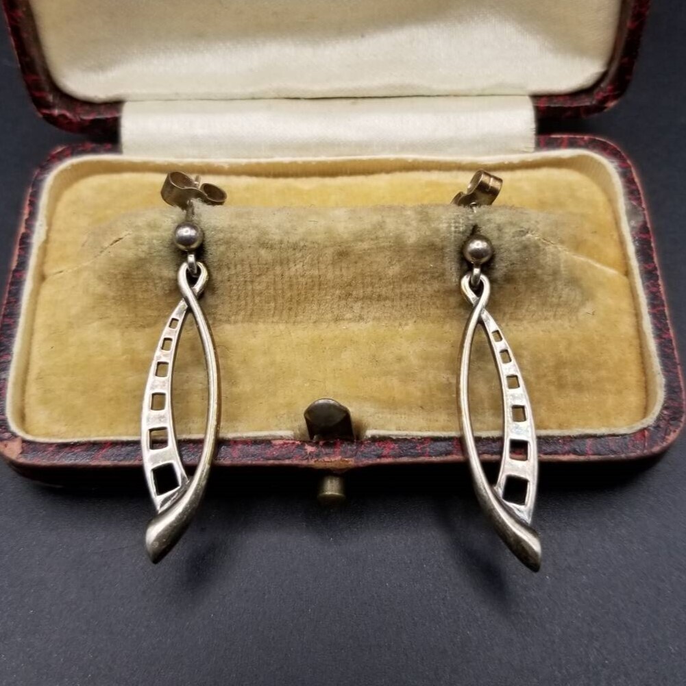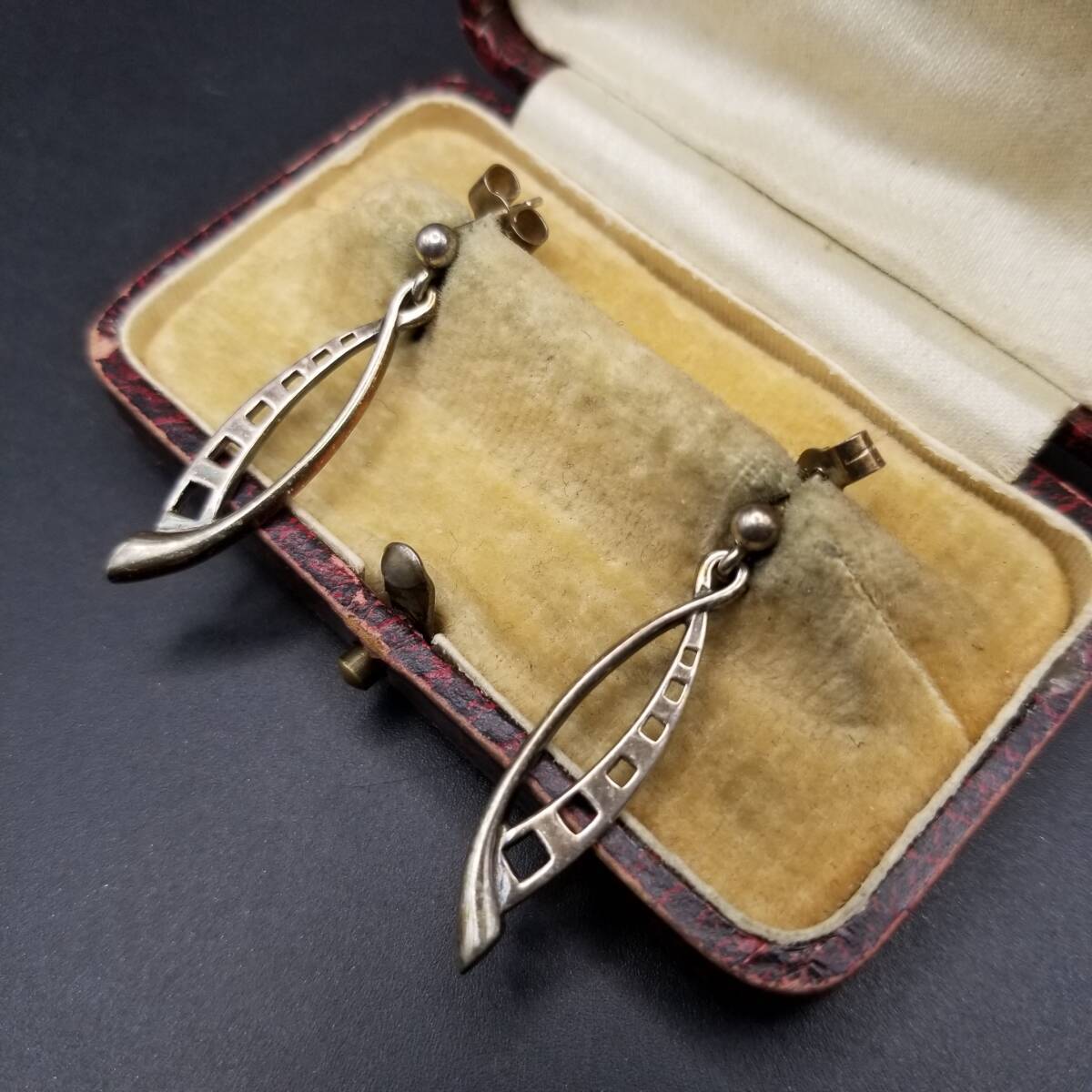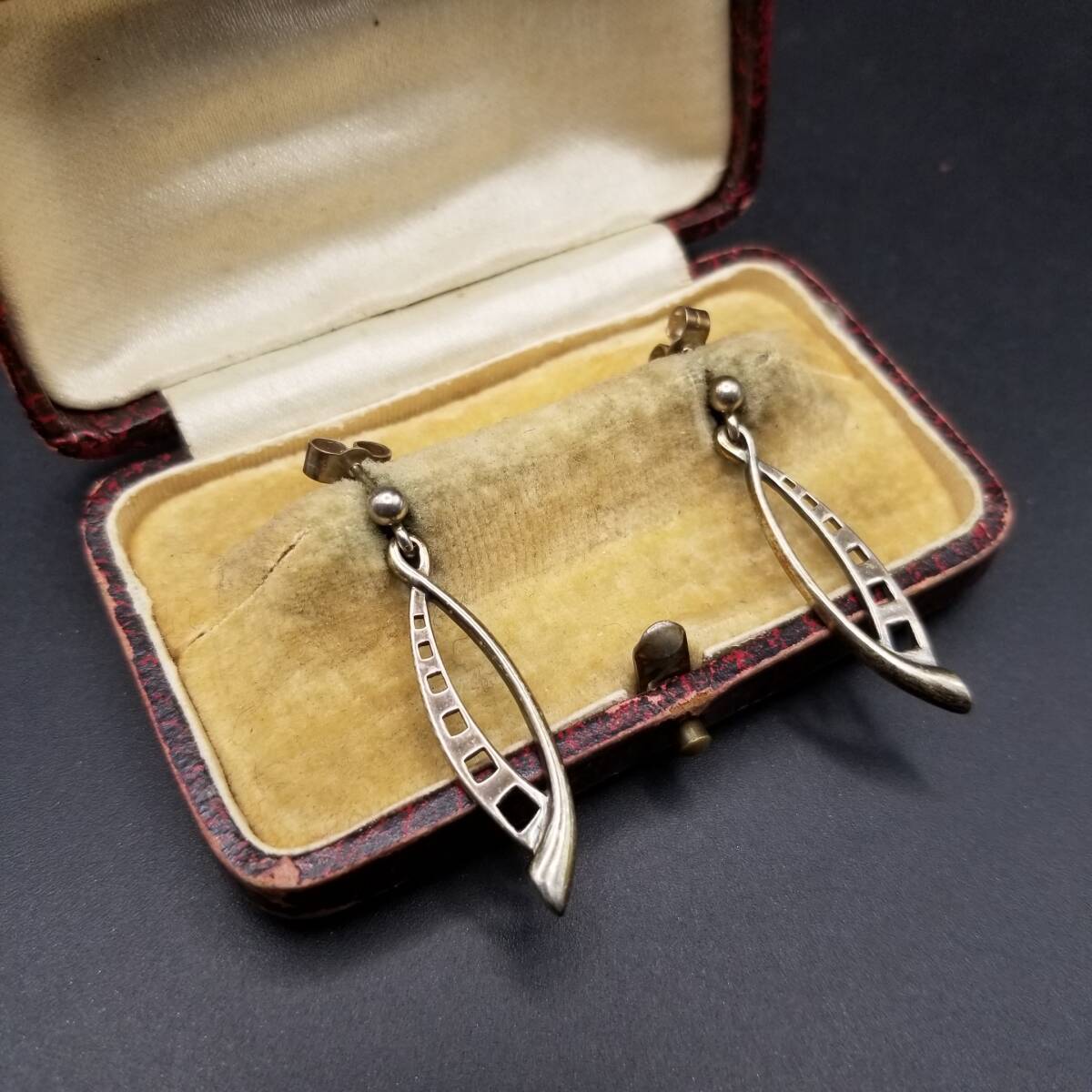 CJL刻印 モダニスト カーブ スクエア ホロアウト 925 シルバー ヴィンテージ ピアス 銀 ミニマル 小ぶり 上品 Y23-D