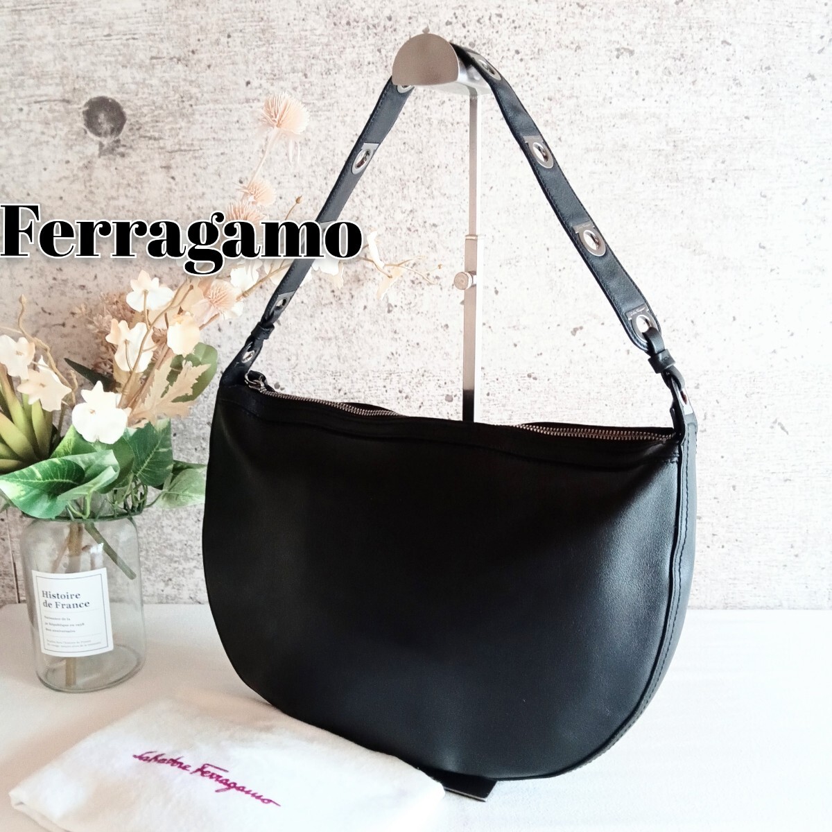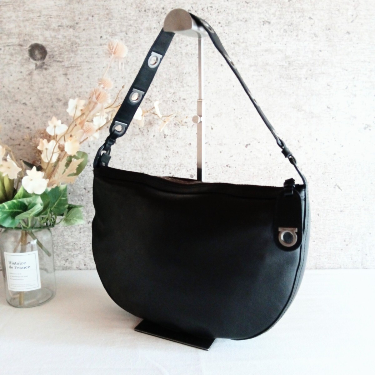 【商品】 Salvatore Ferragamo ヴィンテージ サルヴァトーレ フェラガモ ガンチーニ 半月 ハーフムーン 本革 オールレザー ワンショルダーバッグ ハンドバッグ アクセサリーポーチ 肩掛け 手提げ 腕掛け 鞄 オールド VINTAGE イタリア製