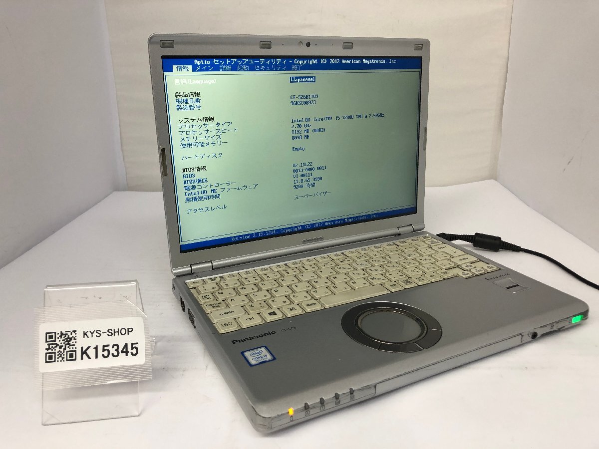 ジャンク/ Panasonic CF-SZ6B17VS Intel Core i5-7200U メモリ8.19GB ストレージ無し 【K15345】