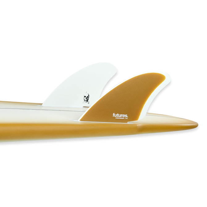 クリステンソンのキールフィンのテンプレートです。先端から大きく伸びたカーブがレールtoレールをスムーズにし、広いベースやフラットフォイルによりオープンフェイスにおけるビッグターンの際にグリップ力を発揮します。そしてグラスファイバー素材のおかげでフィンが不規則な方向にしなることが少ないです。ツインフィン設定のボードであればパフォーマンス系やレトロ系選ばずに使えるフィンです。