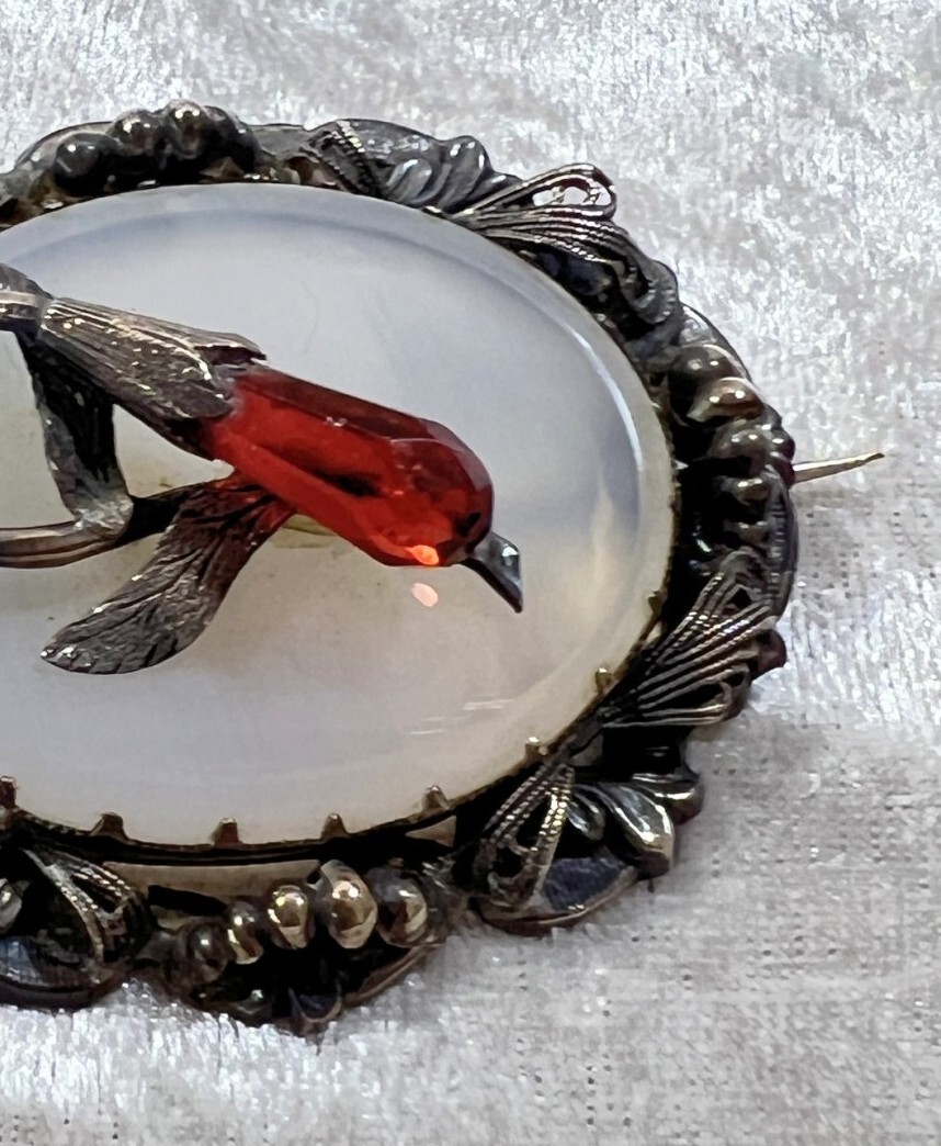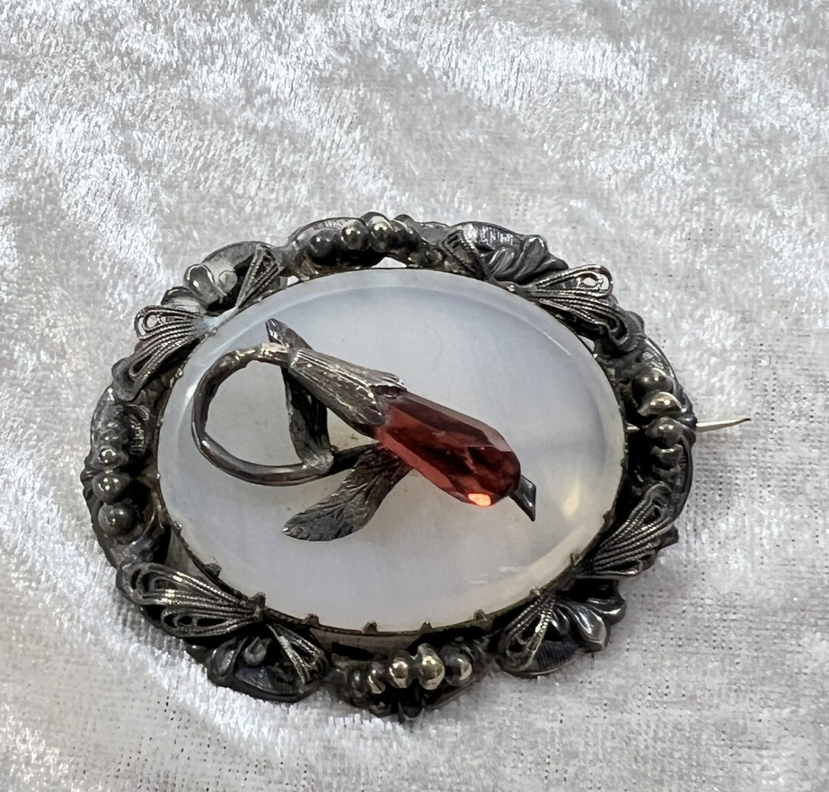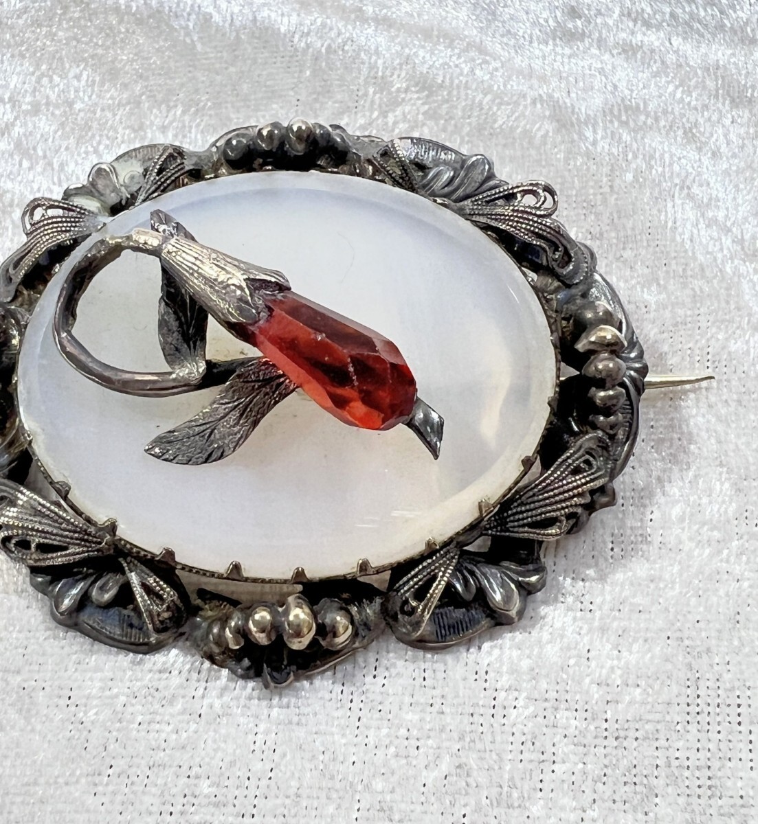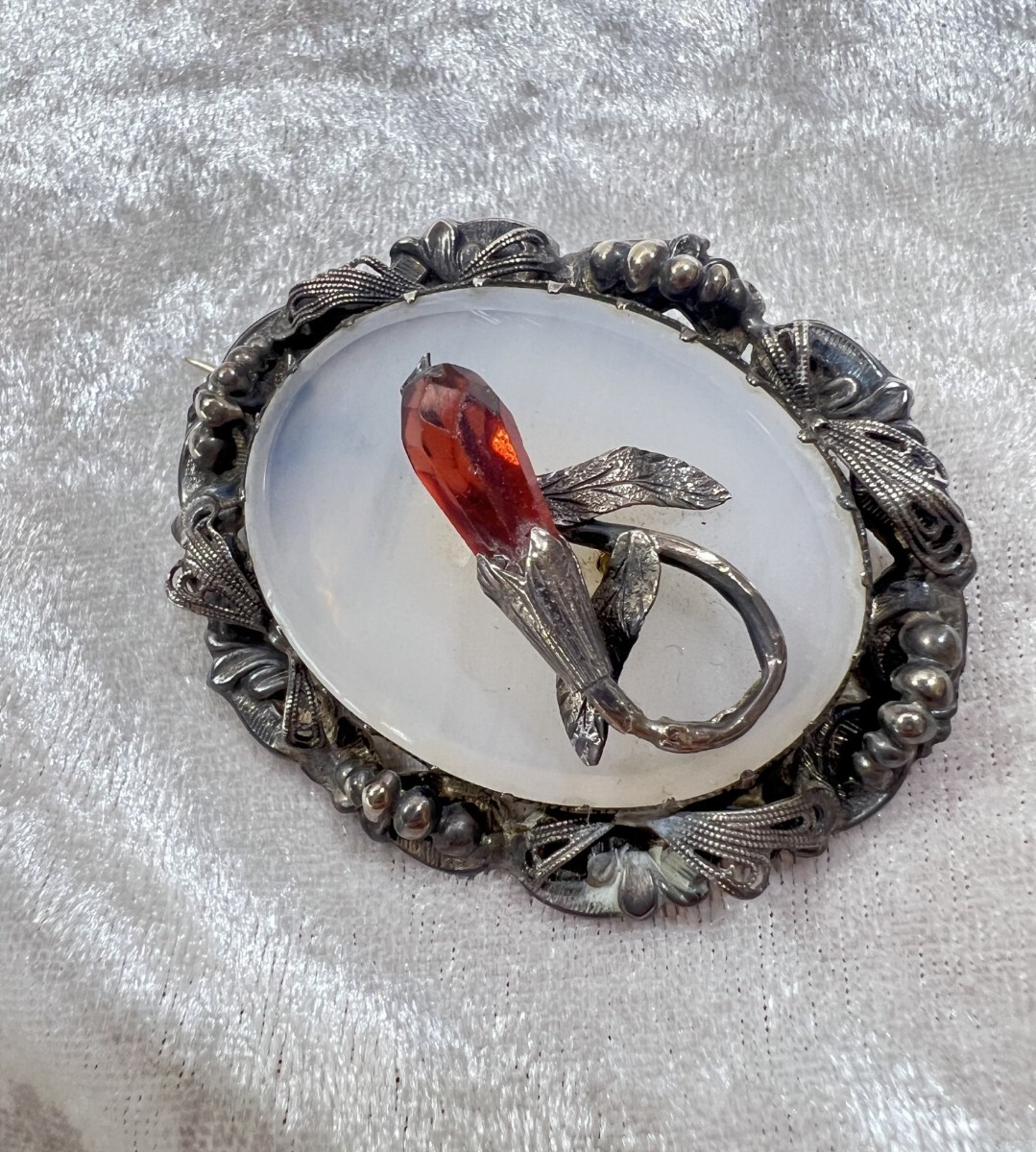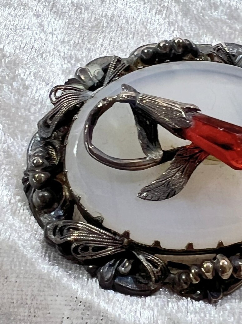 【コスチュームジュエリー】ブローチ 楕円形 銀線細工 メノウの台座 赤いストーン 花のデザイン アクセサリー おしゃれアイテム ビンテージ▼△▼△▼△▼△▼△▼△▼△▼△▼△▼ 商品説明 ▼△▼△▼△▼△▼△▼△▼△▼△▼△▼ 商品名:ブローチ