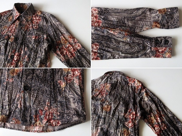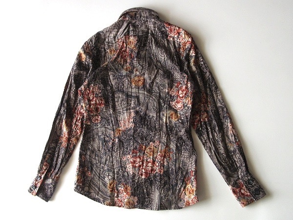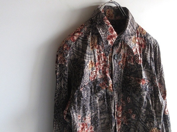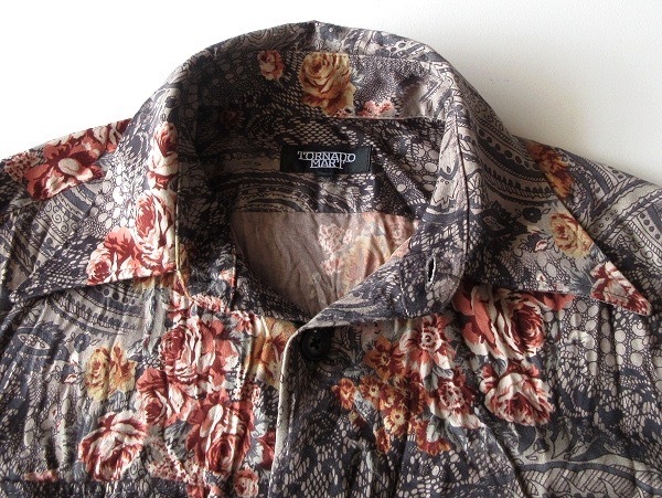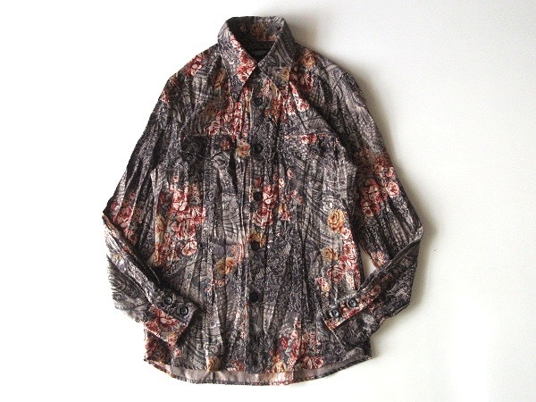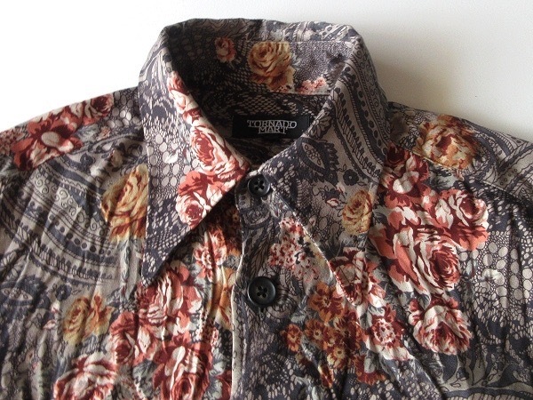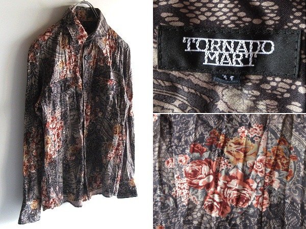 ネコポス対応 TORNADO MART トルネードマート 皺加工 ピーチスキン 総柄 花柄 フラワー柄 重ねプリント シャツ M Y2K 00s ネオビンテージ