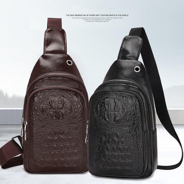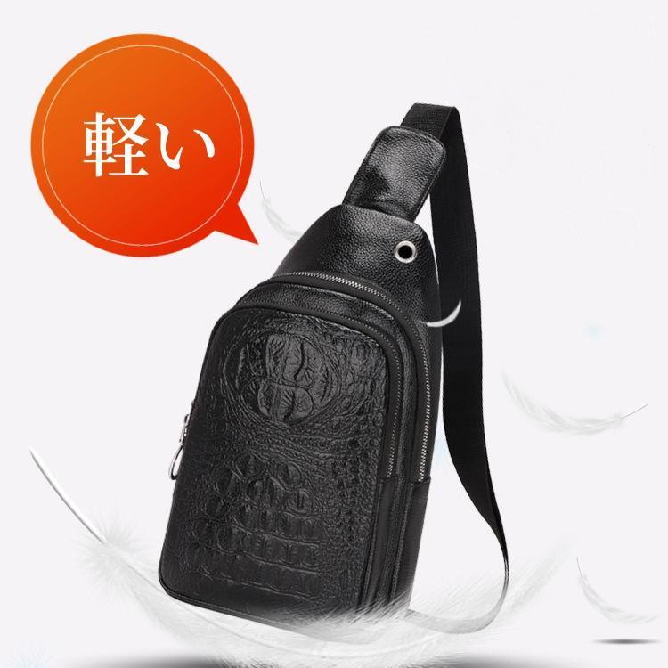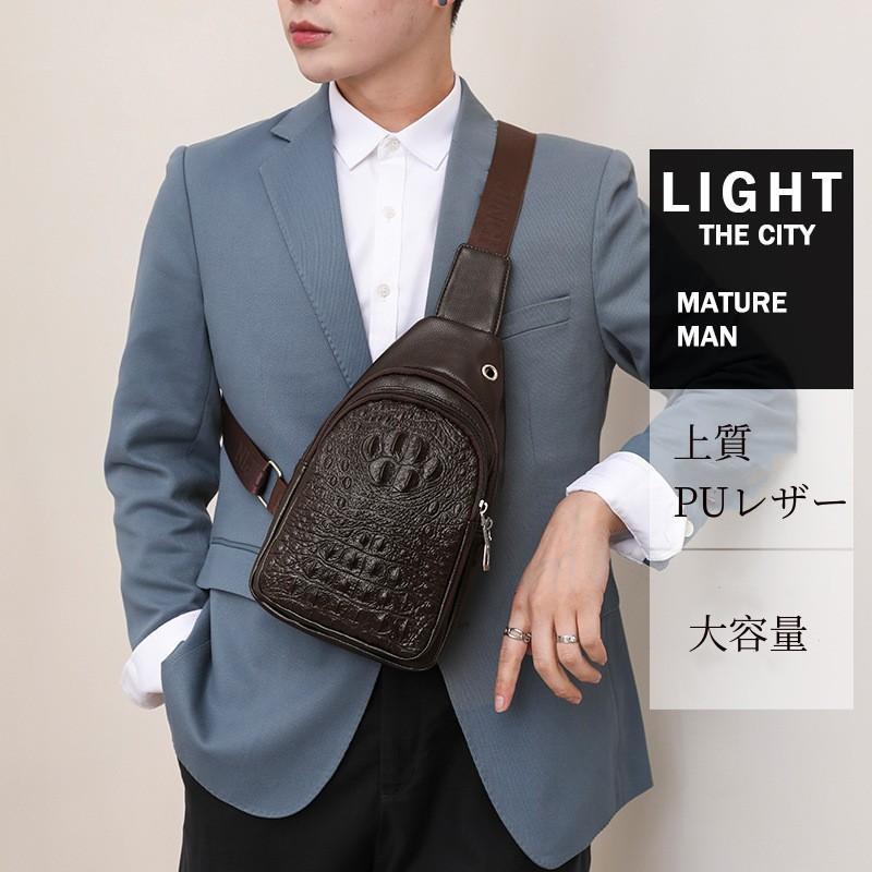 メンズ ボディバッグ ワニ革 クロコ型押し ショルダーバッグ 上質PUレザー ブラウン