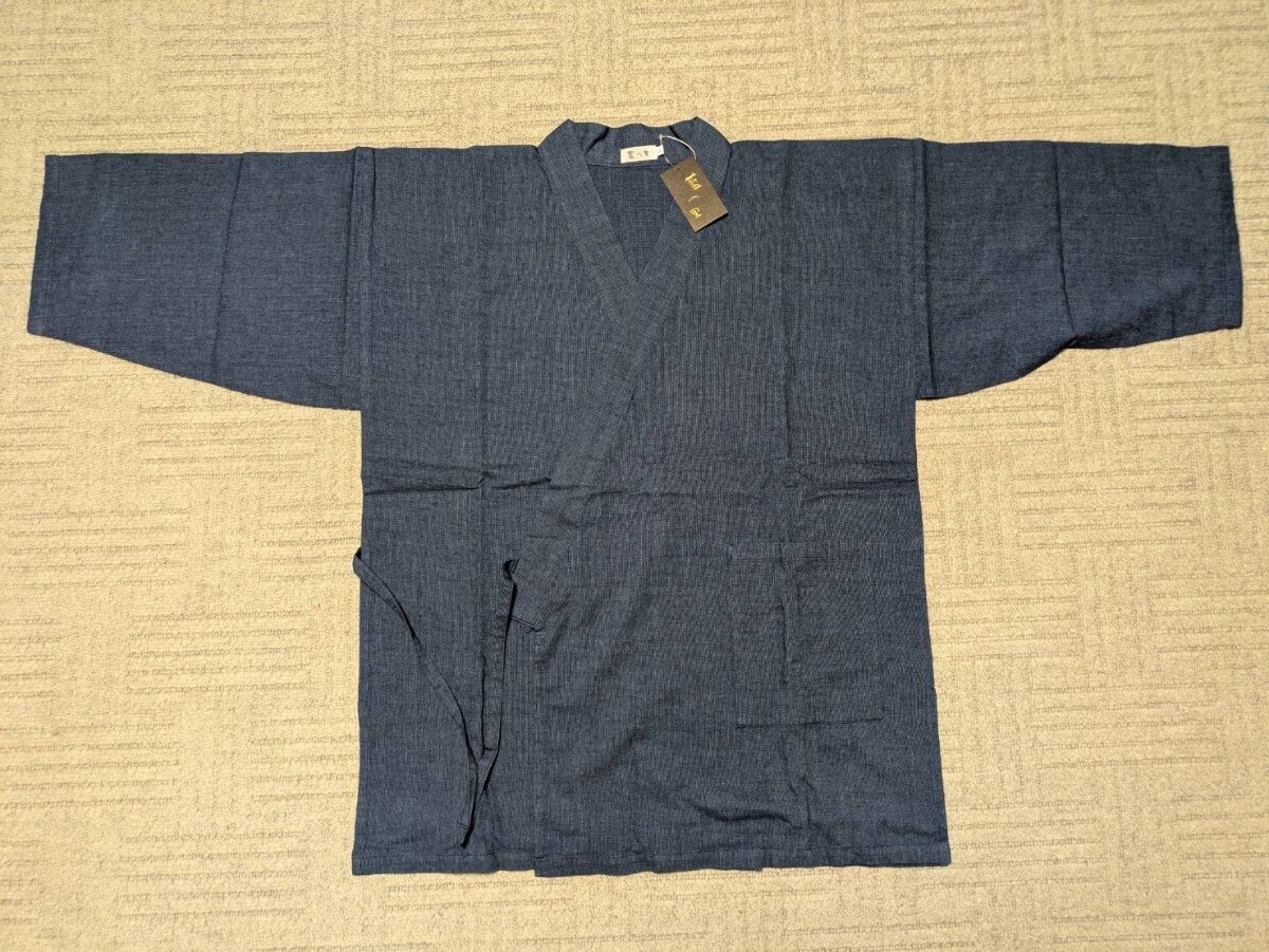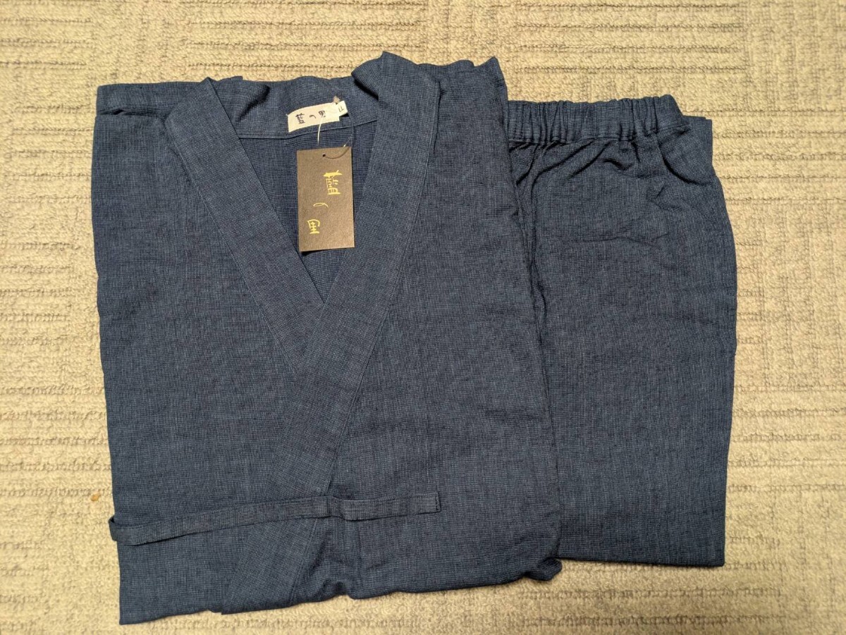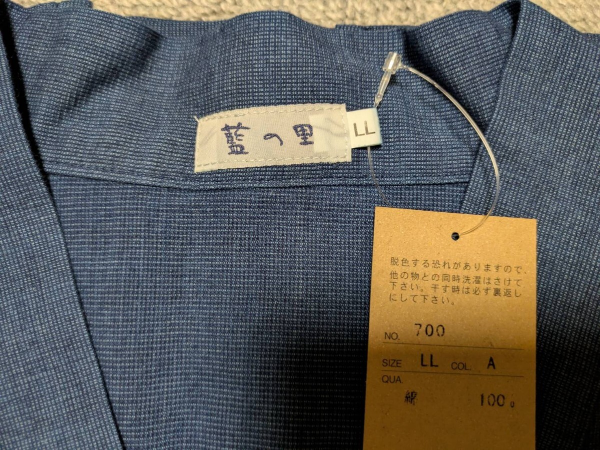 岡山 井原 日本製 藍の里 インディゴ染め 作務衣 上下セット LLサイズ 最高級 和装 和服 甚平 法衣 袈裟 仏教 装束 仏具 威儀 職人 700