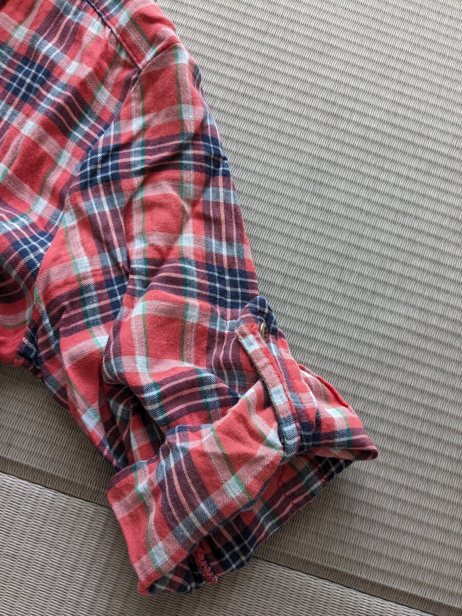 袖ロールアップ用ベルトが内側に付いておりますので、袖をまくってお好みの長さで着ていただけます。(画像3参照。)