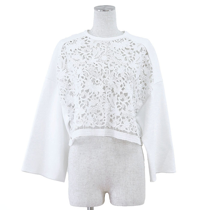 シリーズトレーナー ロゴ プリント フローラル レース スウェット コンビネーション 長袖 レディース XS 白 伊製