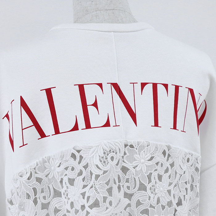 【美品】Valentino ヴァレンチノ トレーナー ロゴ プリント フローラル レース スウェット コンビネーション 長袖 レディース XS 白 伊製
