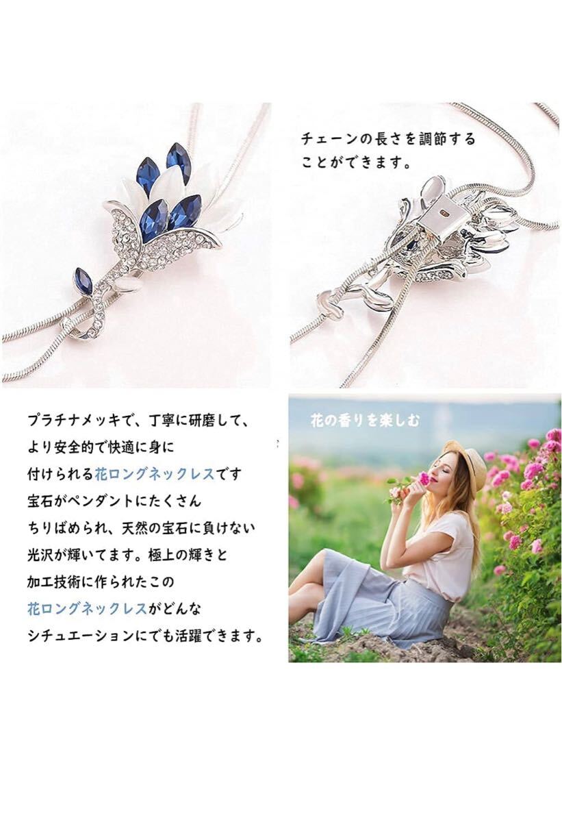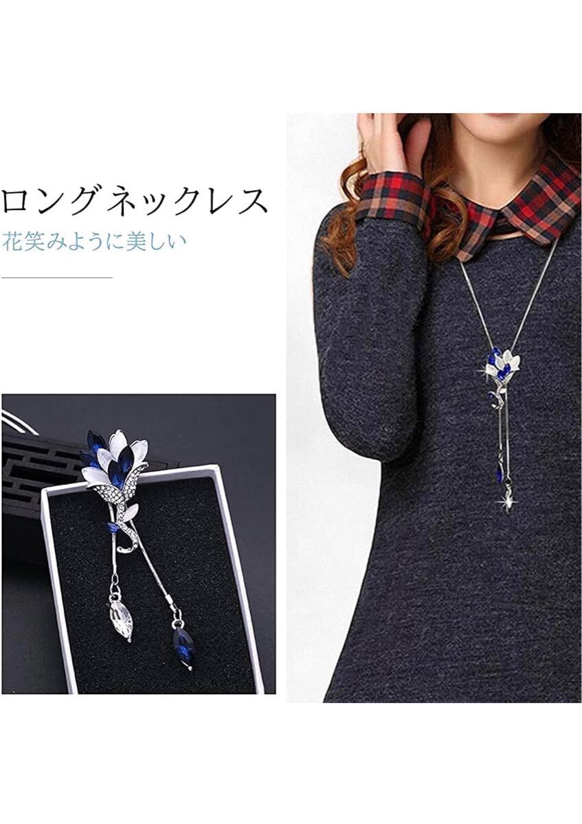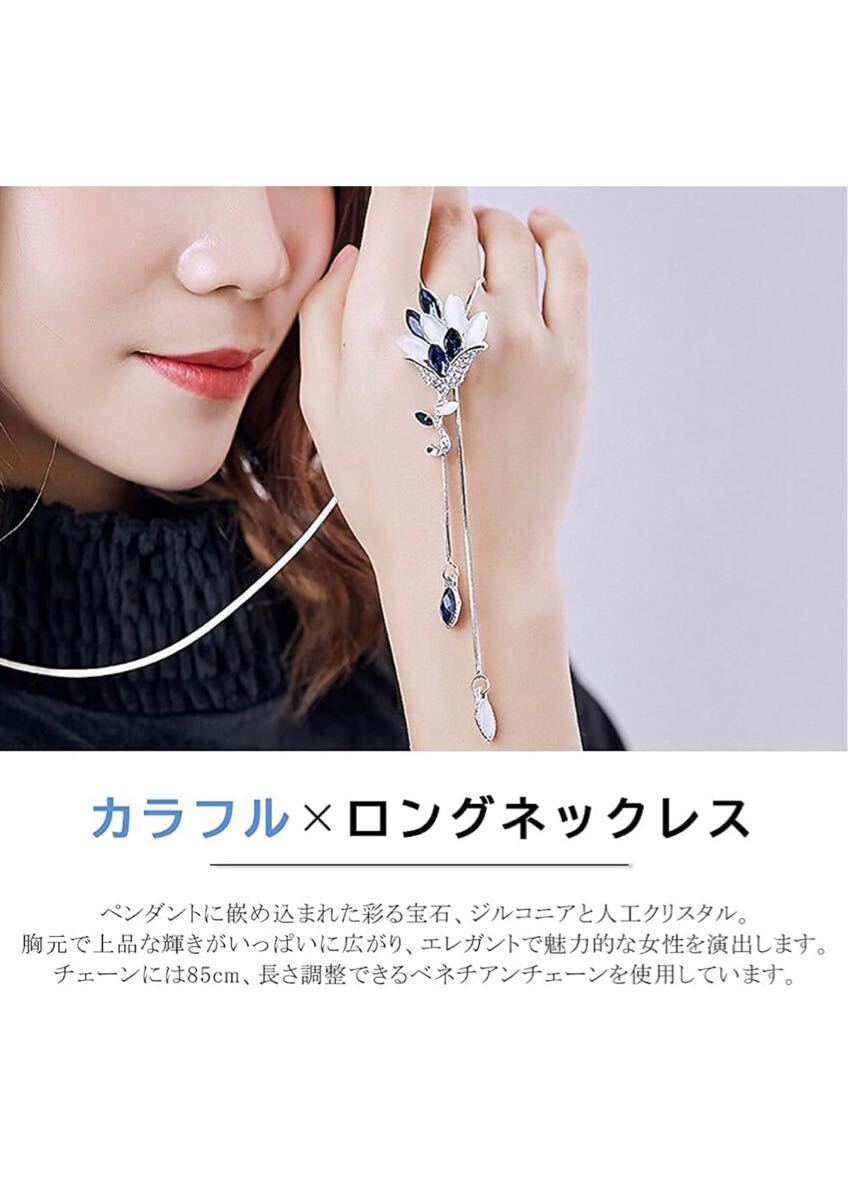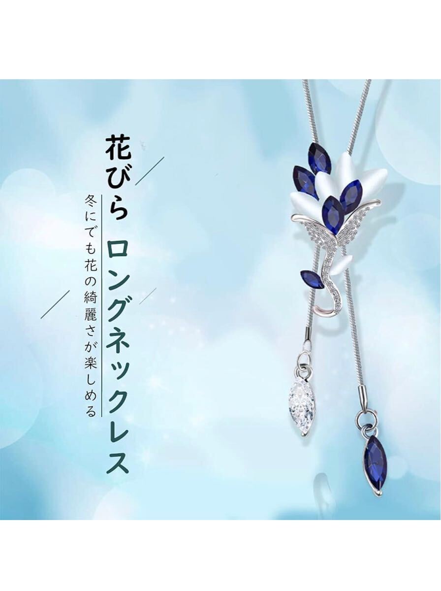 ロングネックレス レディース セーターネックレス Y字ネックレス 花 ジルコニア クリスタル ラリエット タッセル ベネチアンチェーンネックレス 猫目石 ペンダント 冬 女性 アクセサリー 誕生日 プレゼント ギフトボックス付き(ブルークリスタル)