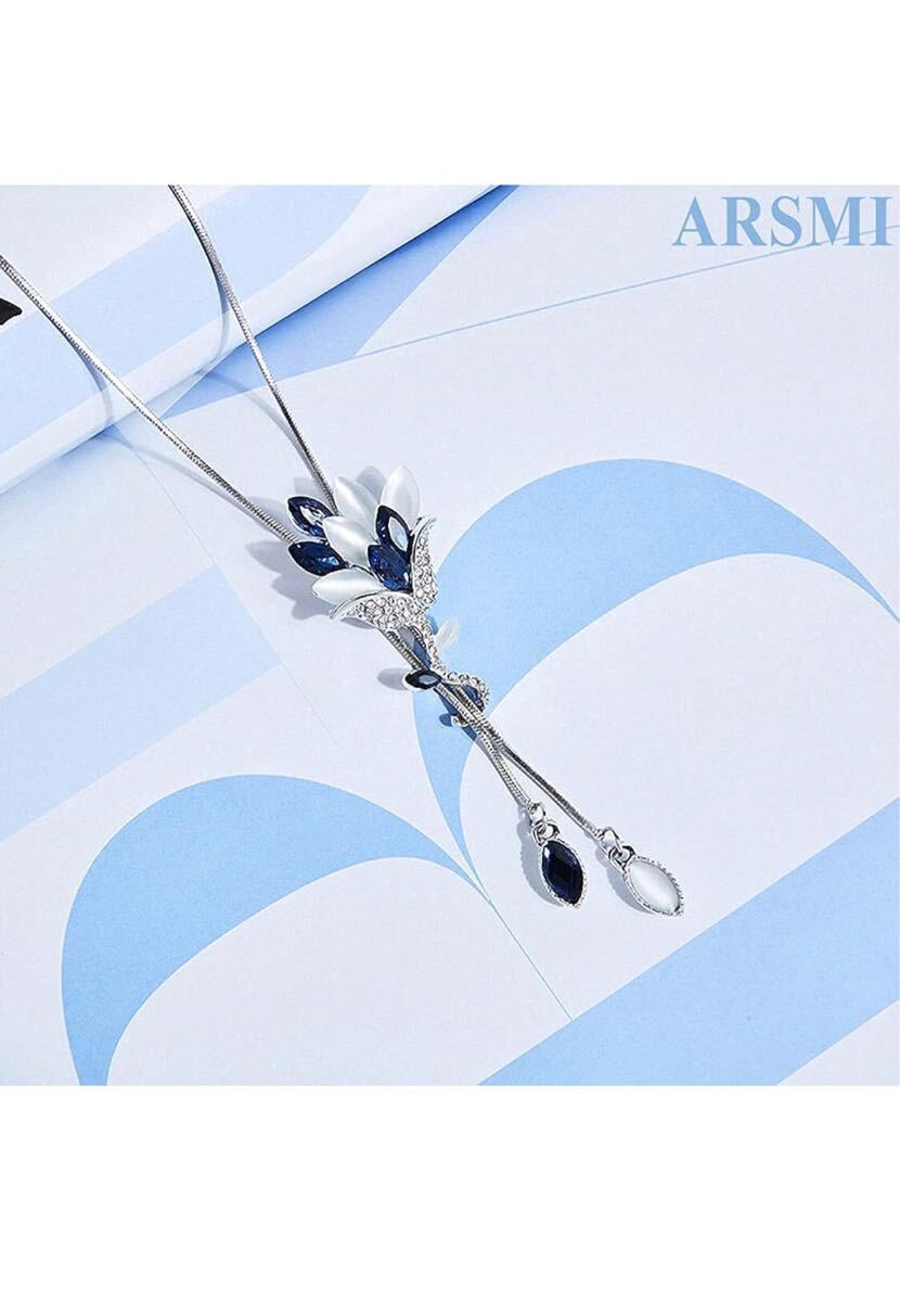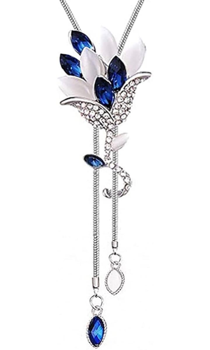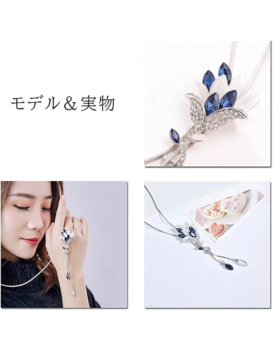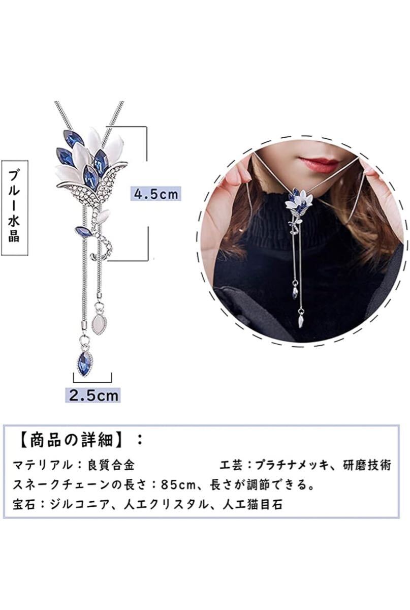 ロングネックレス レディース セーターネックレス Y字ネックレス 花 ジルコニア クリスタル ラリエット タッセル ベネチアンチェーンネックレス 猫目石 ペンダント 冬 女性 アクセサリー 誕生日 プレゼント ギフトボックス付き(ブルークリスタル)