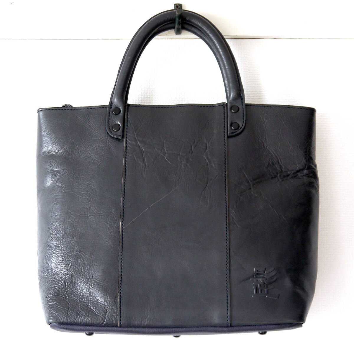 髭 HARVEST ハーヴェスト トートバッグ 本革レザー〈 上質な高級牛革を贅沢に使用 〉ネイビー 美品