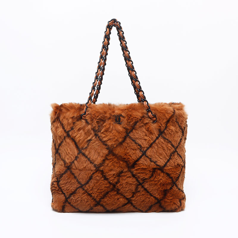 シャネル CHANEL トートバッグ 6番台 ラビットファー チェーン ブラウン