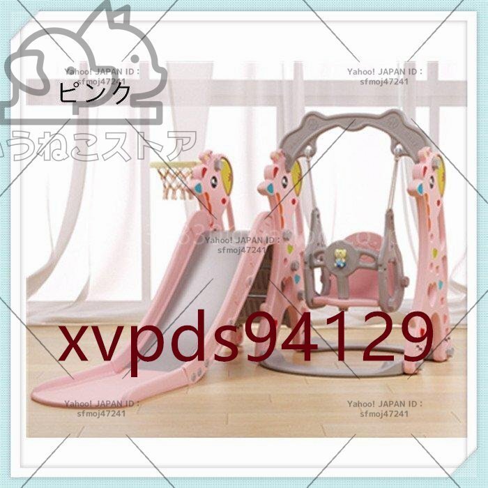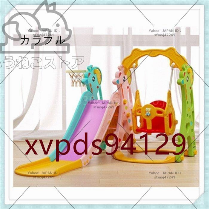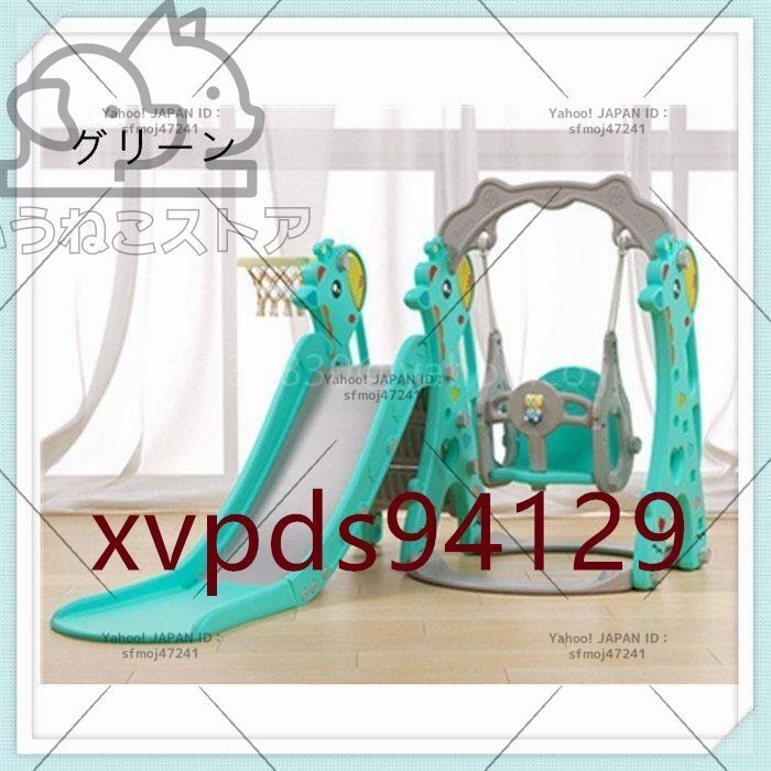 滑り台+バスケットボールフープ+ぶらんこ:グリーン、ピンク、カラフル