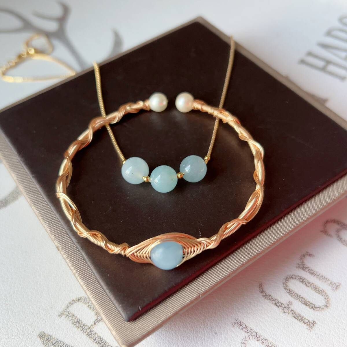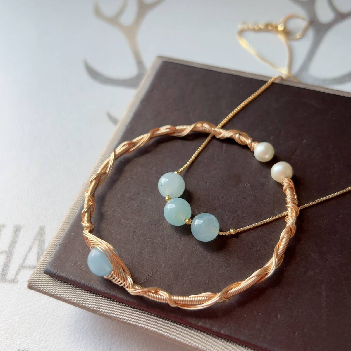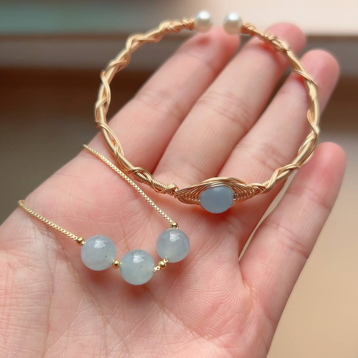◇アクアマリン◇ネックレスペンダント+ブレスレット計2点セット◇天然石◇パワーストーン◇プレゼントにも034S4112