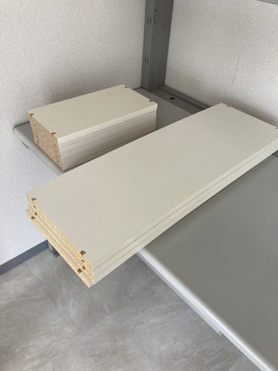 • 棚板が2サイズありますが使用できるのは長いほうのみです。短いものは別の家具の物ですので出品物ではありませんのでお渡しできません。
