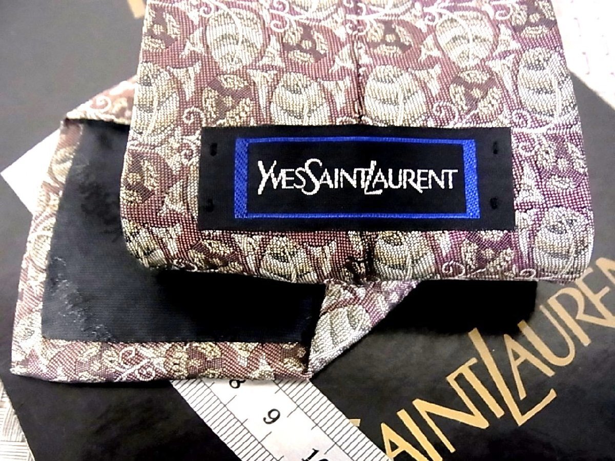 ♪38148C♪良品【刺繍 葉っぱ 植物 柄】サンローラン【YSL】ネクタイ