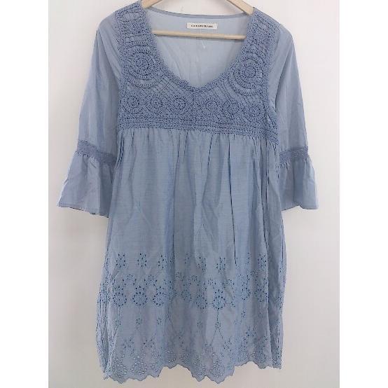 ◇ green label relaxing 総刺繍 レース 長袖 膝丈 ワンピース ブルー系 レディース