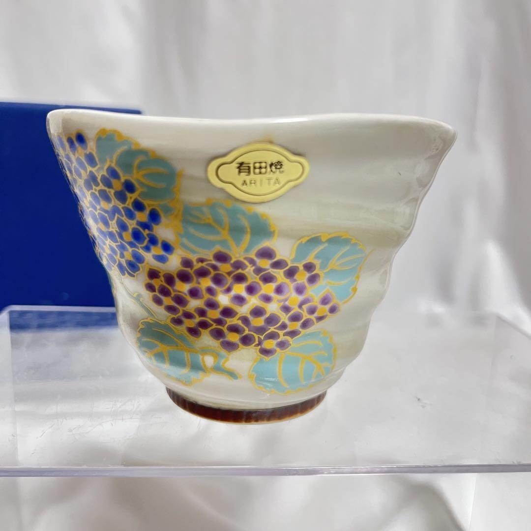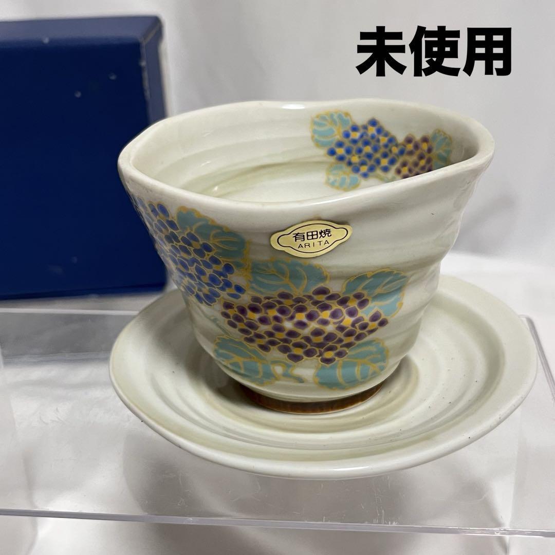 未使用 有田焼 仁清あじさい いっぷく碗 皿 茶器 日本茶 煎茶 湯呑 抹茶 フリーカップ 茶道具 茶碗