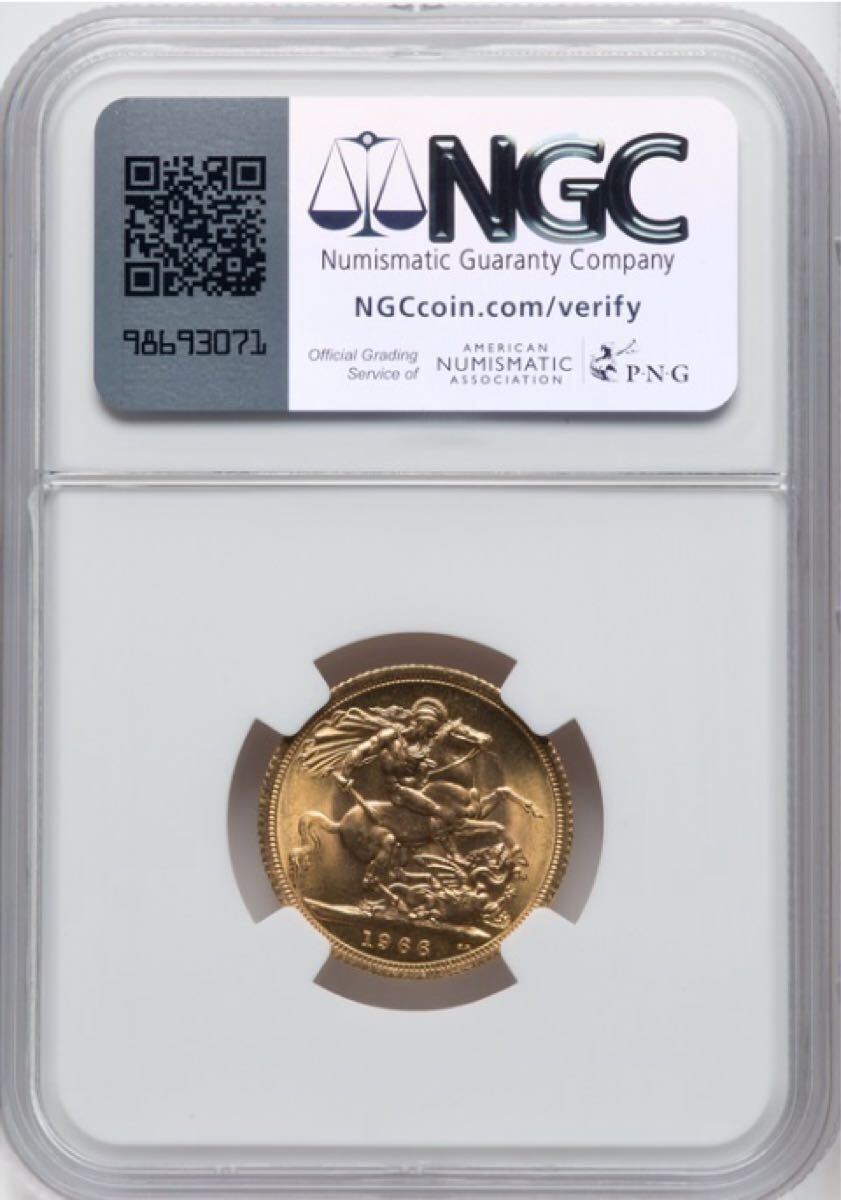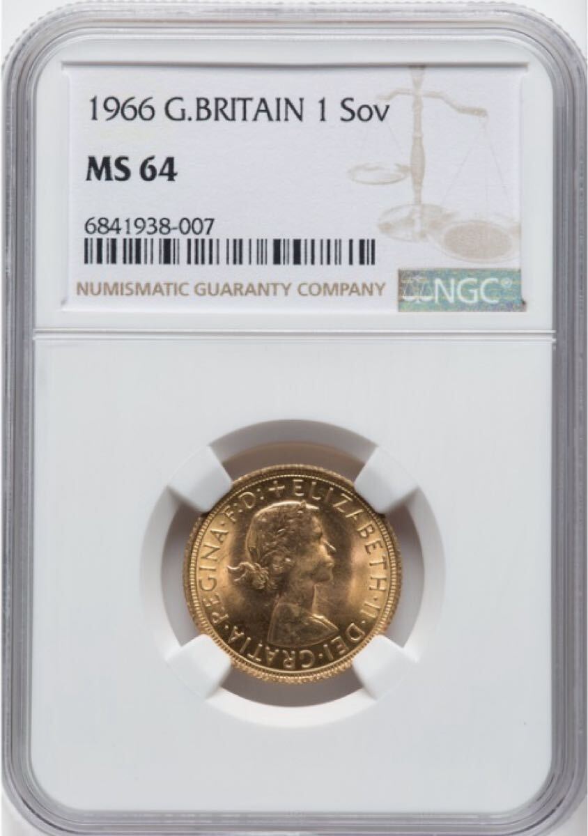 【1966年エリザベス2世ソブリン金貨】英国 ヤング・ヤング・エリザベス MS64(NGC)