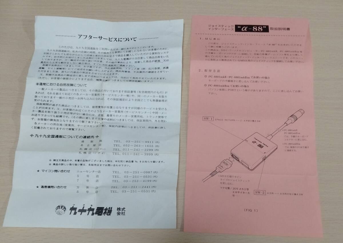 ツクモ PC-88 ジョイスティックインターフェイス α-88 の出品です。