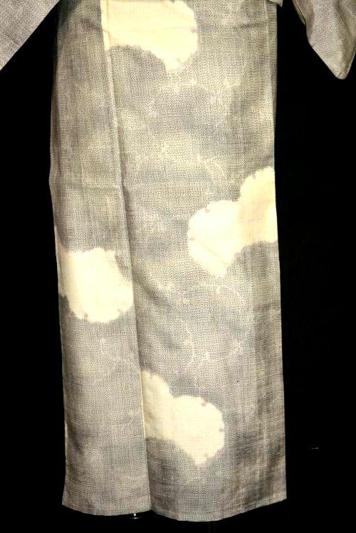 単衣 中古 着物 送料無料身丈153cm 裄丈62.5cm 最高級 紬 銀杏雪輪文 グレー 正絹 カジュアル T3562
