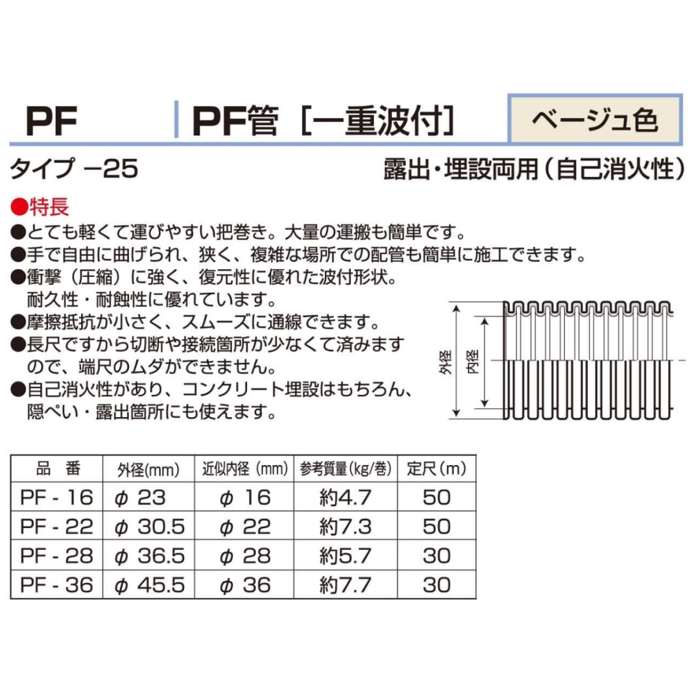 衝撃(圧縮)に強く、復元性に優れた波付形状。耐久性・耐蝕性に優れています。